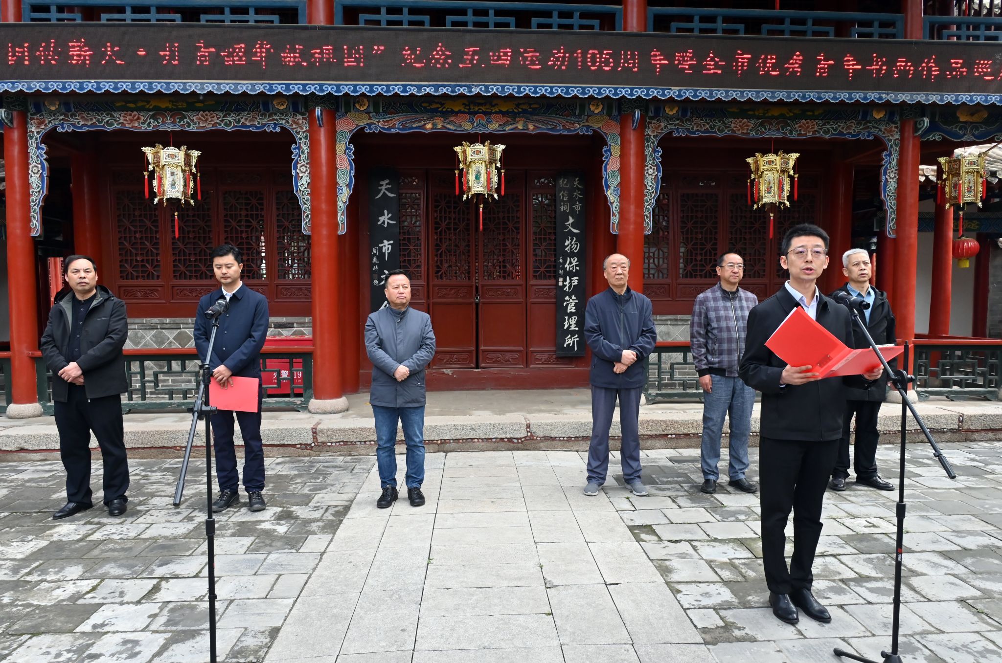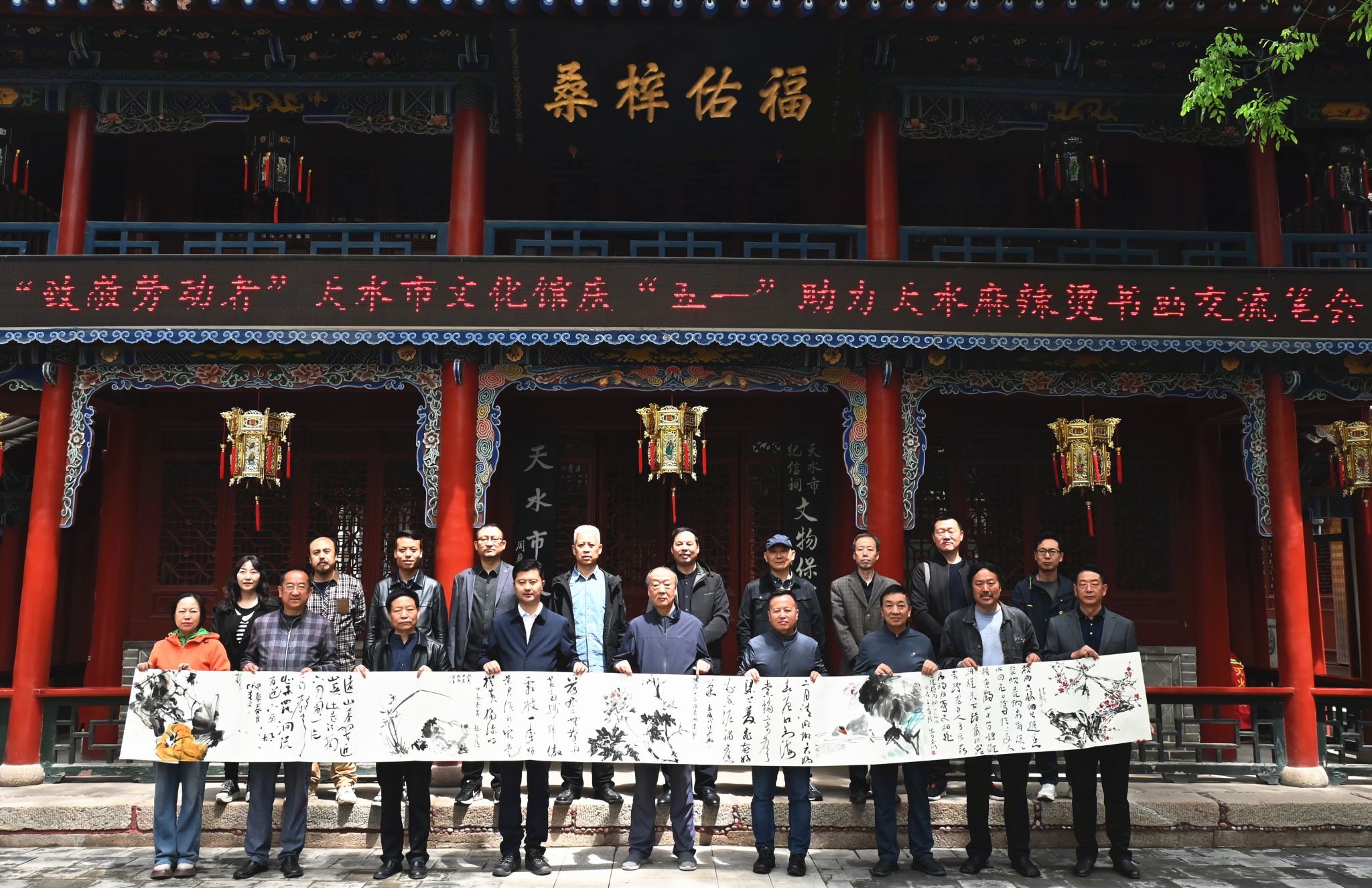 开幕式后,市文化馆组织我市书画名家曹宝凌、祁国荣、高全生、成友文等十余人开展了"致敬劳动者"天水市文化馆庆"五一"助力天水麻辣烫书画交流笔会,各位书画家以饱含深情的笔墨创作了五本主题鲜明、内容积极向上、形式新颖的册页,向劳动者致敬,助力天水麻辣烫,激励和引导全市青年牢记历史使命,团结奋斗,锐意进取,以积极向上的精神风貌踊跃投身于天水市经济文化建设,共谱文明社会新风,为全面开创现代化强市贡献青春力量!