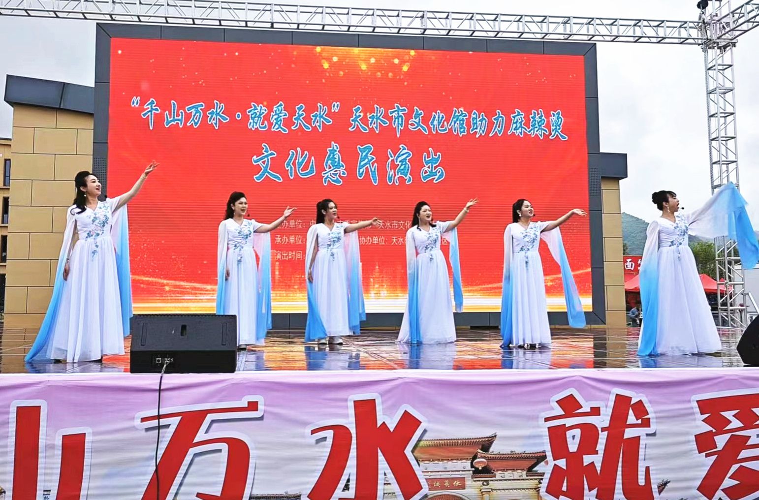 为期三天的演出中,天水市文化馆组织了表演唱《天水蓝》、男声独唱《欢乐的海洋》《草原上升起不落的太阳》《山丹丹花开红艳艳》、快板《天水小吃天下传》、女声独唱《灯火里的中国》《好客天水欢迎您》《万疆》、板胡独奏《秦腔即兴曲》等节目,演员们精湛的表演赢得了现场观众的阵阵掌声和喝彩声。
