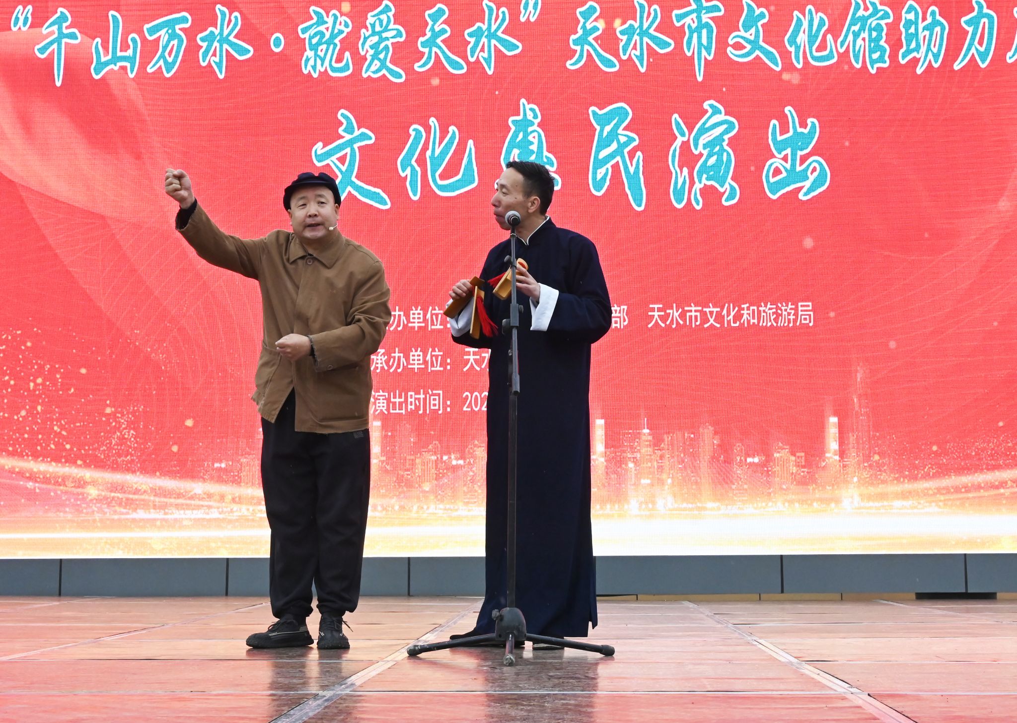 演出期间天水市文化馆还邀请外地游客进行了现场互动,宣传天水文化旅游景点,并为广大游客赠送了暖心小礼物,让外地游客充分感受到天水文艺工作者的贴心服务。