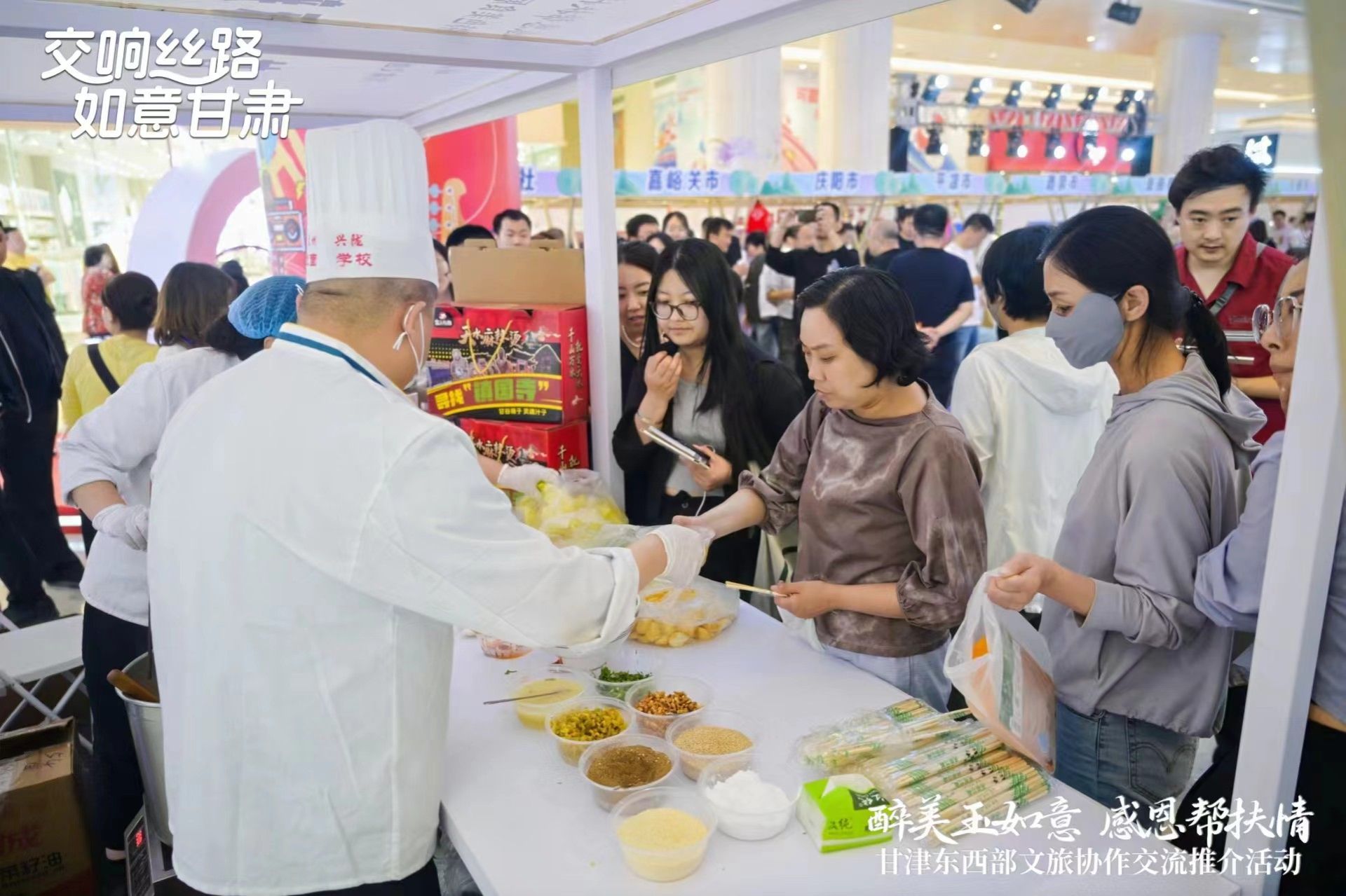 活动包含甘肃文化旅游推介会、文创非遗市集和特色美食展示活动。推介会上,天水市文旅局通过发放宣传书籍册页、开展文创商品展示展销,向出席活动的天津市各位嘉宾积极推介天水厚重的历史文化和丰富的旅游资源,表达天津甘肃东西部协作对口帮扶的谢意,热忱欢迎天津市游客到天水消费娱乐、休闲度假。