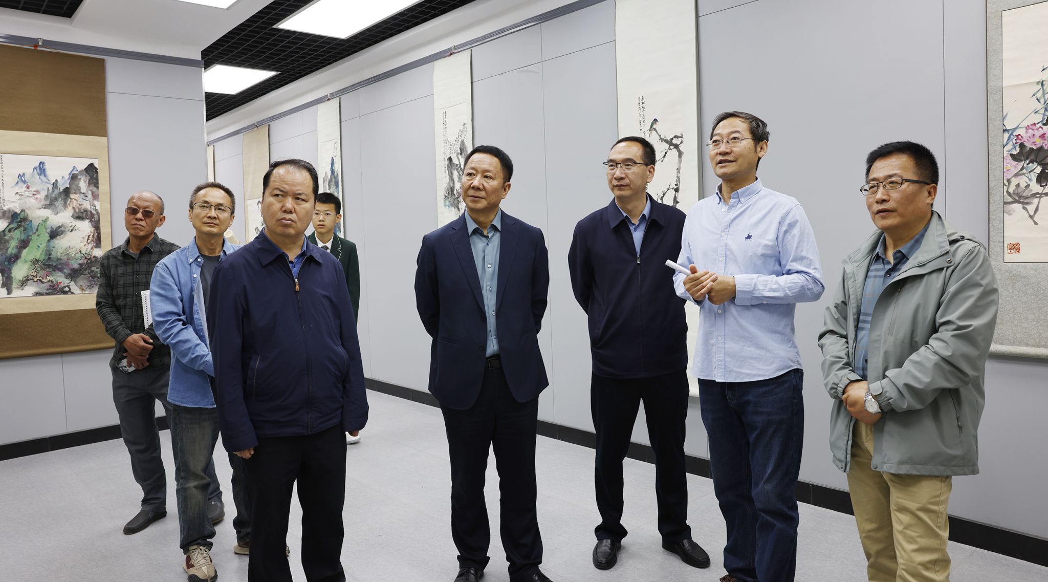 市人大常委会副主任何吉洲,市政协副主席吴立新,市委宣传部副部长王伟,市文化和旅游局党组书记、局长牛新虎,原天水师院美术学院院长、天水市美协主席张玉壁,省美协副主席、市文联兼职副主席、市美协主席贾利珠,天水师院美术学院院长刘晓毅,市书协、美协部分理事、会员,天水老年书画研究会、天水老年大学、天水农民书画研究会及天水市文化馆免费培训书画班学员,徐郁文先生的家属及亲友,社会各界书画爱好者以及新闻媒体的朋友70余人参加活动。