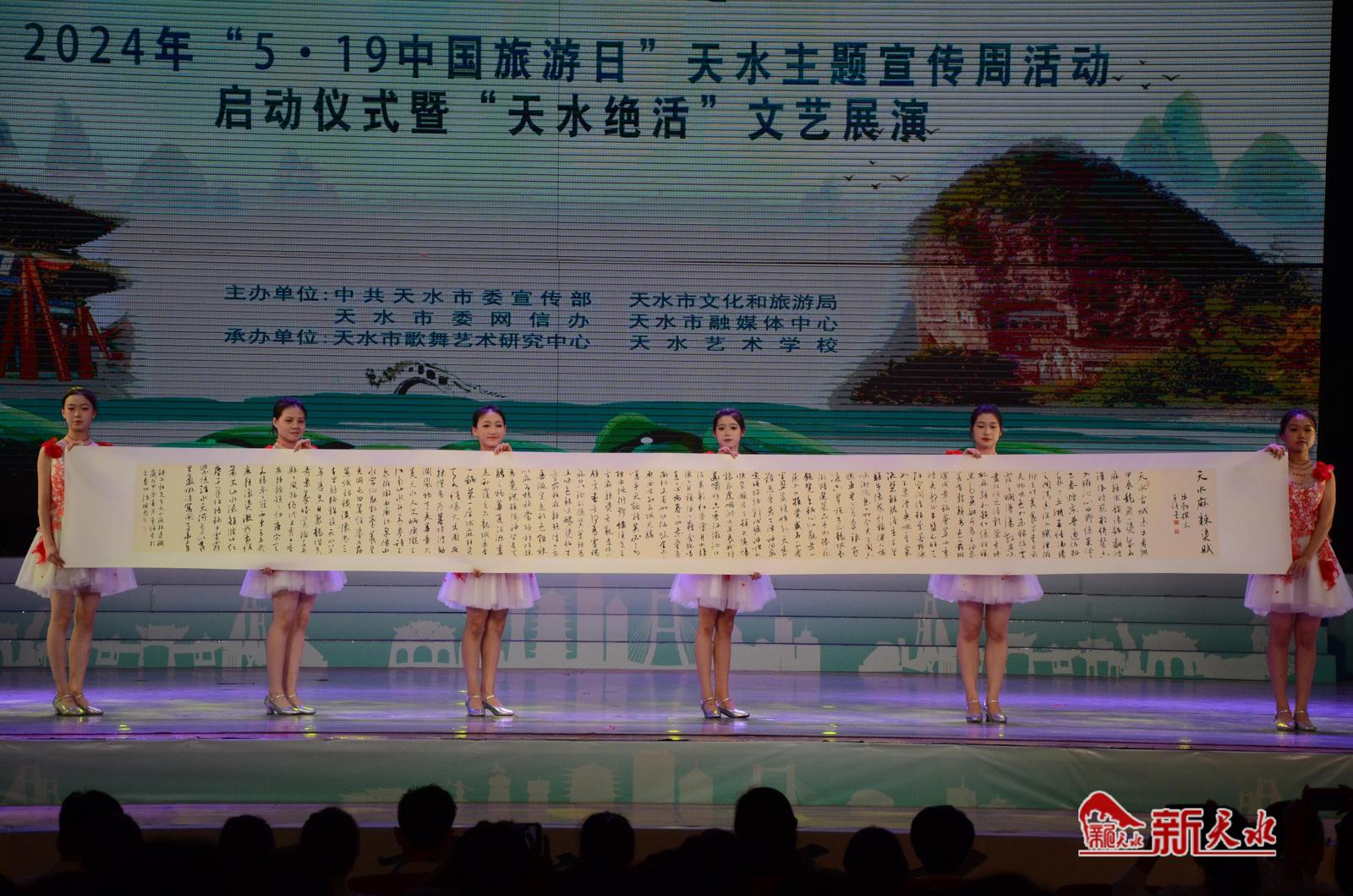 新天水讯【记者王晓馨】5月13日,2024年“5•19中国旅游日”天水主题宣传周活动启动仪式暨“天水绝活”文艺展演在秦州大剧院举行。