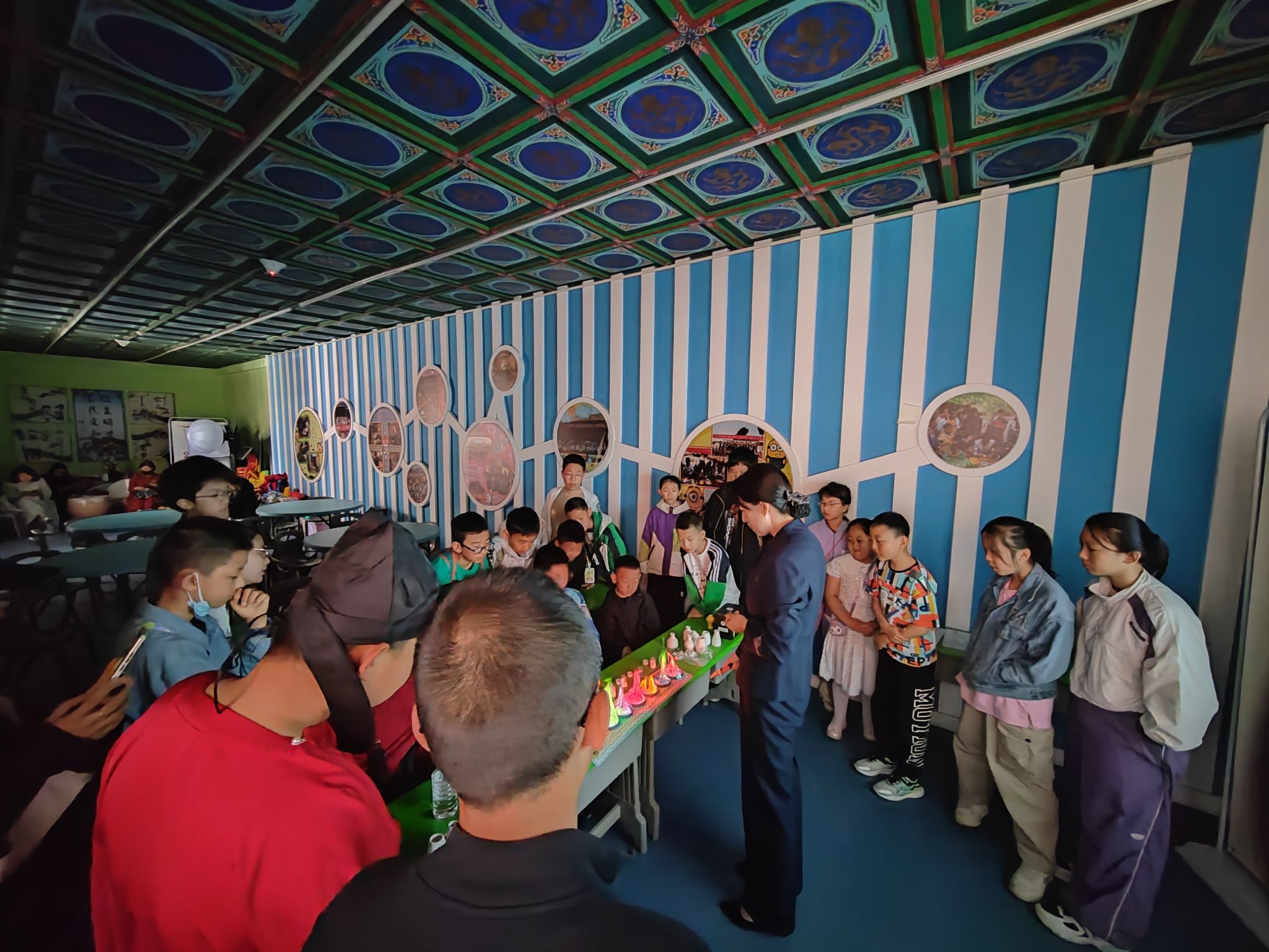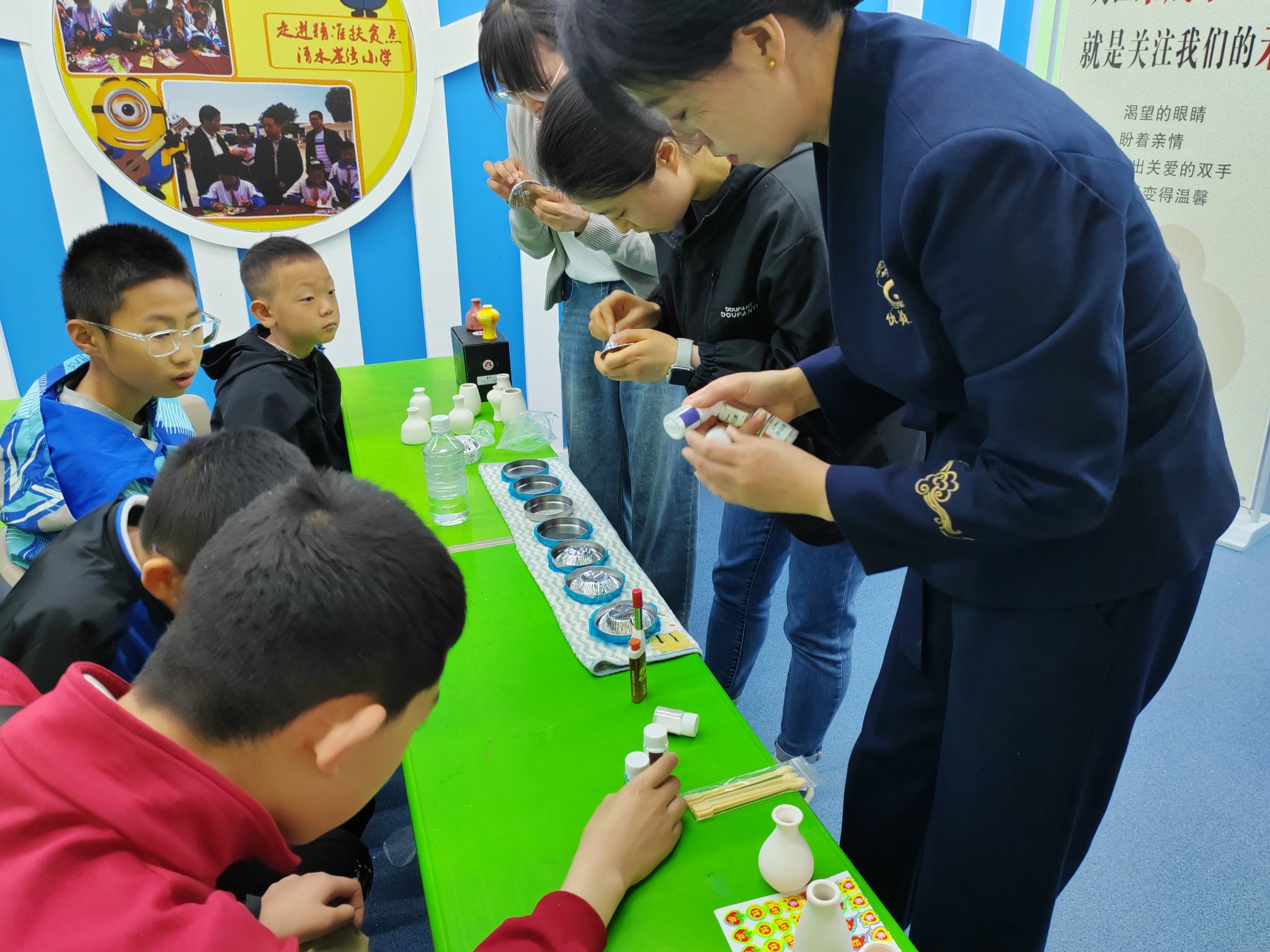 活动开始,宣教员在博物馆瓷器专题陈列展厅为同学们讲解了钧窑瓷器的特点,之后在青少年活动中心,结合视频带同学们了解瓷器制作工艺,依托课件向同学们展示钧瓷的艺术价值及其独特的冰裂纹形成过程。为了让同学们更好的了解窑变原理,宣教员指导同学们动手体验化学金属实验“焰色反应”,引导同学们观察实验中不同火焰的颜色,并通过撒盐的方式让同学们感受到了钧瓷开片的过程。最后同学们结合手工拓画的方式,在陶瓷素胚上拓印出心目中的钧瓷。