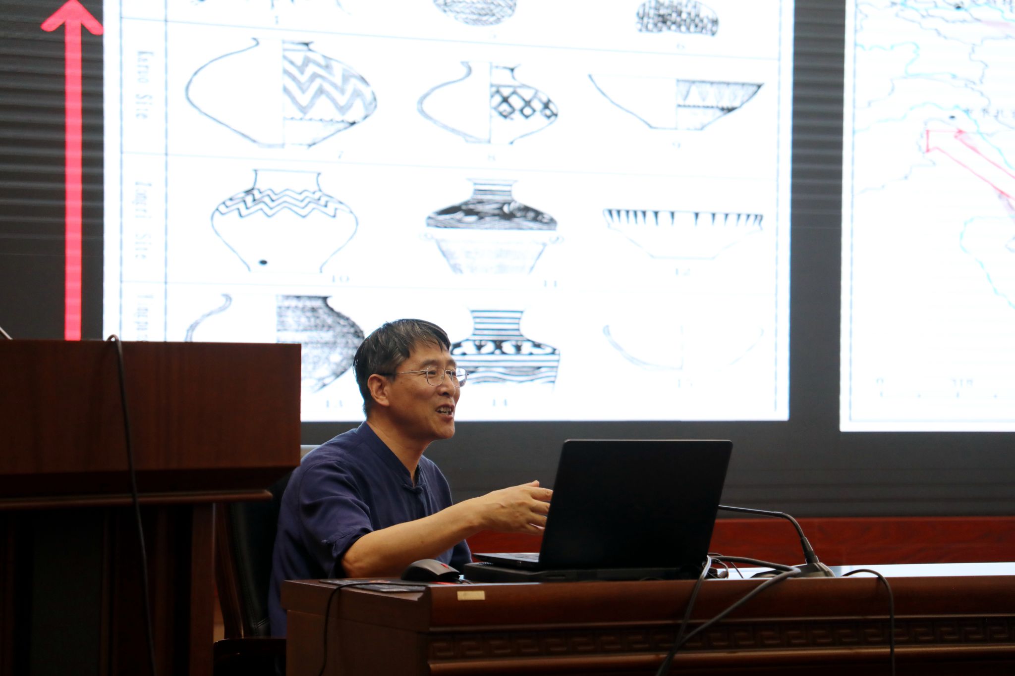 在讲座中,韩建业教授基于考古发掘资料,梳理了“早期中国”的形成过程,围绕甘肃地区考古发掘的秦安大地湾遗址、张家川圪垯川遗址、庆阳南佐都邑遗址、临洮马家窑遗址等具有重要代表性的史前遗址,通过“8000年前迈开文明起源的第一步、6000年前迈开文明起源的第二步、5000年前陇东走进文明社会的殿堂、5000年前陇西开启东西文化交流的大门”四个方面分阶段讲述了甘肃地区从距今8000年到4000年左右史前先民在物质文化和精神文化方面的显著成就和甘肃在中华文明起源史上的地位。