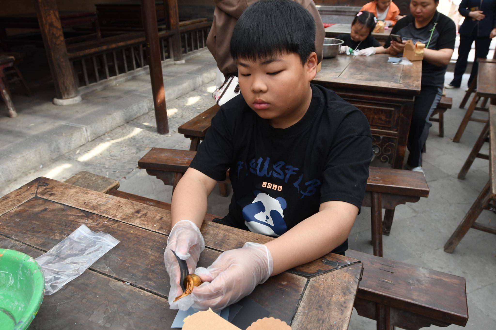 除了理论知识的学习,还安排了动手制作的环节。在社教专员的指导下,青少年们可以亲手体验雕漆的制作过程,如打磨、髹漆等。在这个过程中,他们细致入微的完成了每一步工作,将自己的梦想和希望融入到作品中。