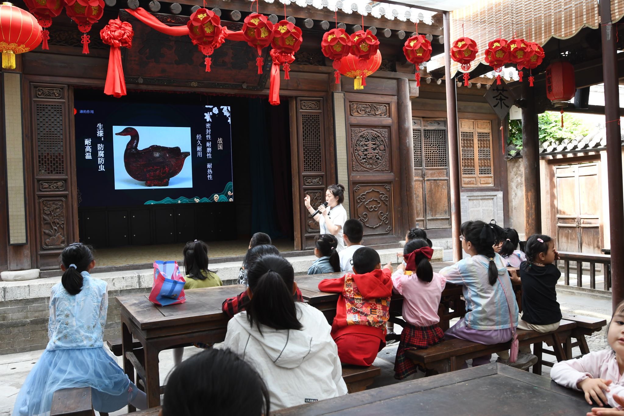 在雕漆社教活动中,社教专员通过PPT、视频等形式,向青少年们详细介绍了雕漆的历史、文化以及制作过程,并重点介绍了天水当地雕漆工艺。通过深入了解雕漆的渊源和技艺,他们可以更加真切地感受到中国传统文化的博大精深和天水雕漆工艺的精髓,从而增强对文化遗产的保护意识。