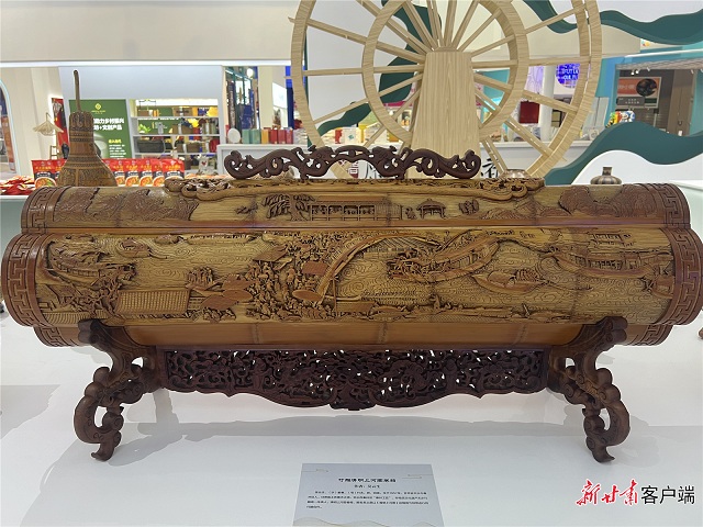 长1.2米、高0.6米的《清明上河图》则是卷匣式竹雕作品,同样颇有看头——