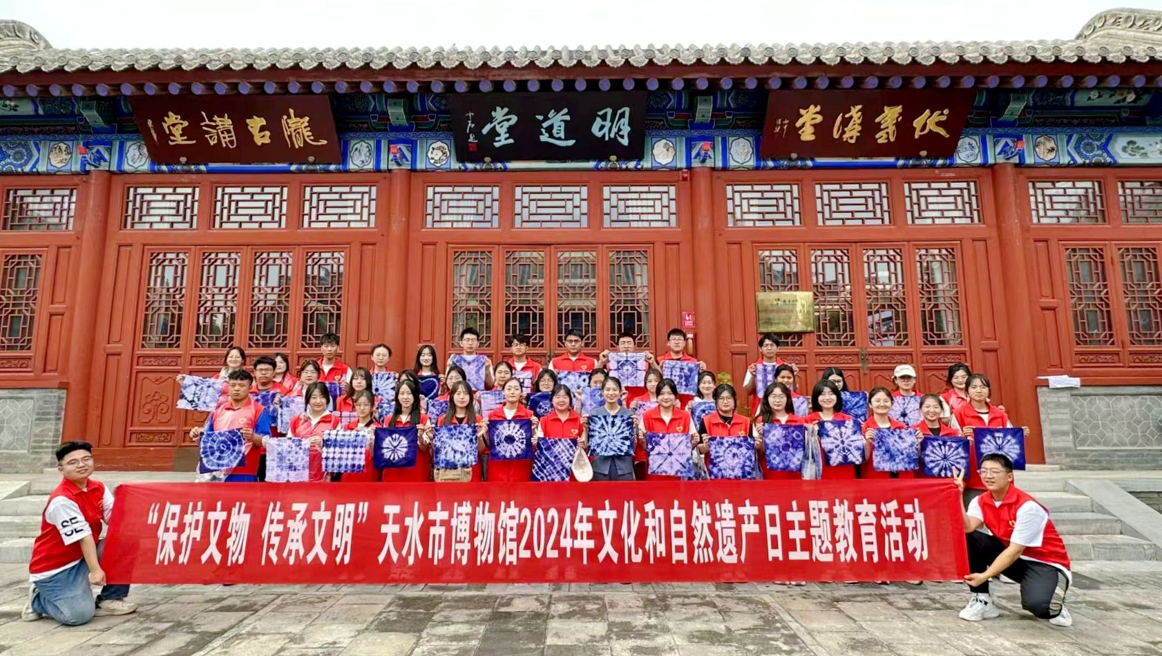 扎染是中国民间传统而独特的染色工艺,已有数千年的历史,是国家非物质文化遗产之一。为进一步加强非物质文化遗产的知识普及,弘扬中华优秀传统文化,在第八个文化和自然遗产日来临之际,天水市博物馆开展“一绢一韵 布里生花”——非遗传承之扎染主题社教活动,通过扎染知识科普和手工制作两个环节,让青少年近距离接触非遗、了解非遗,领略中华优秀传统文化的魅力和深厚内涵。
