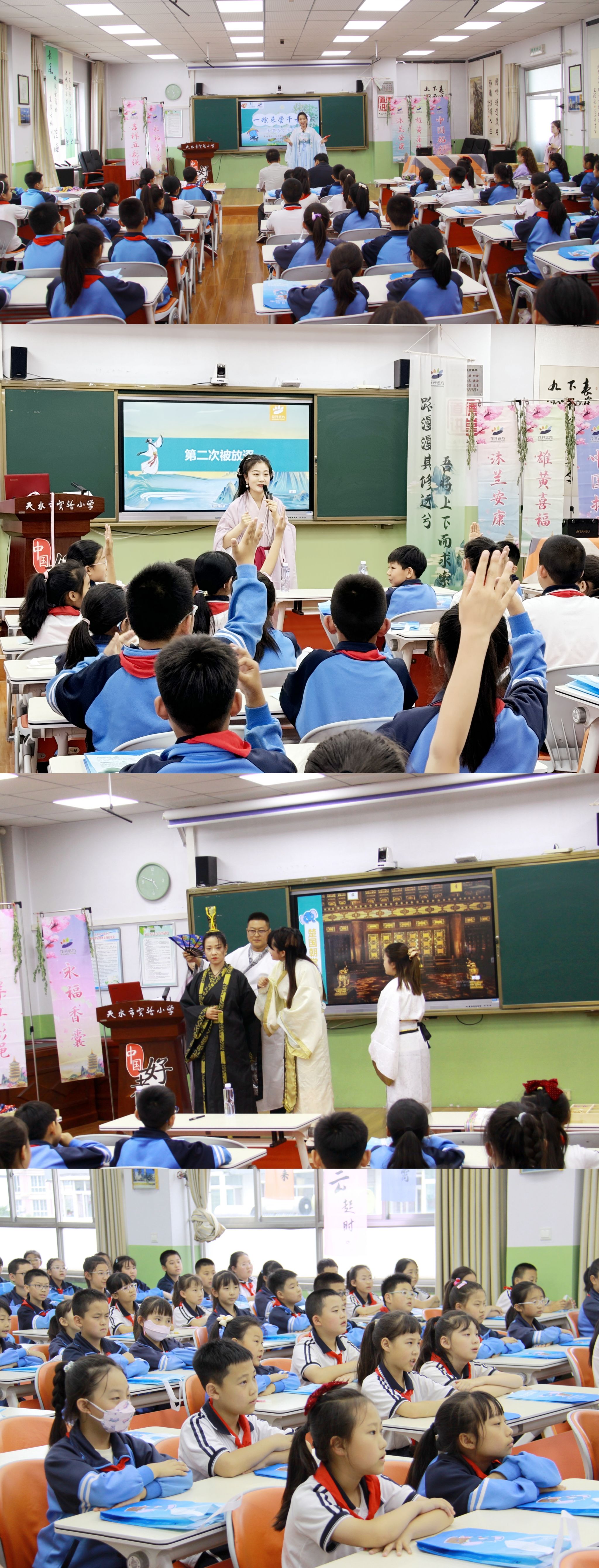 端午节前夕,天水市图书馆携手花开远方课程中心,走进天水市实验小学,举办了一场以“寻历史渊源 话魅力端午”为主题的校园阅读推广活动。活动采用现场授课与校园平台直播同步进行,线上线下共600余名师生参与。