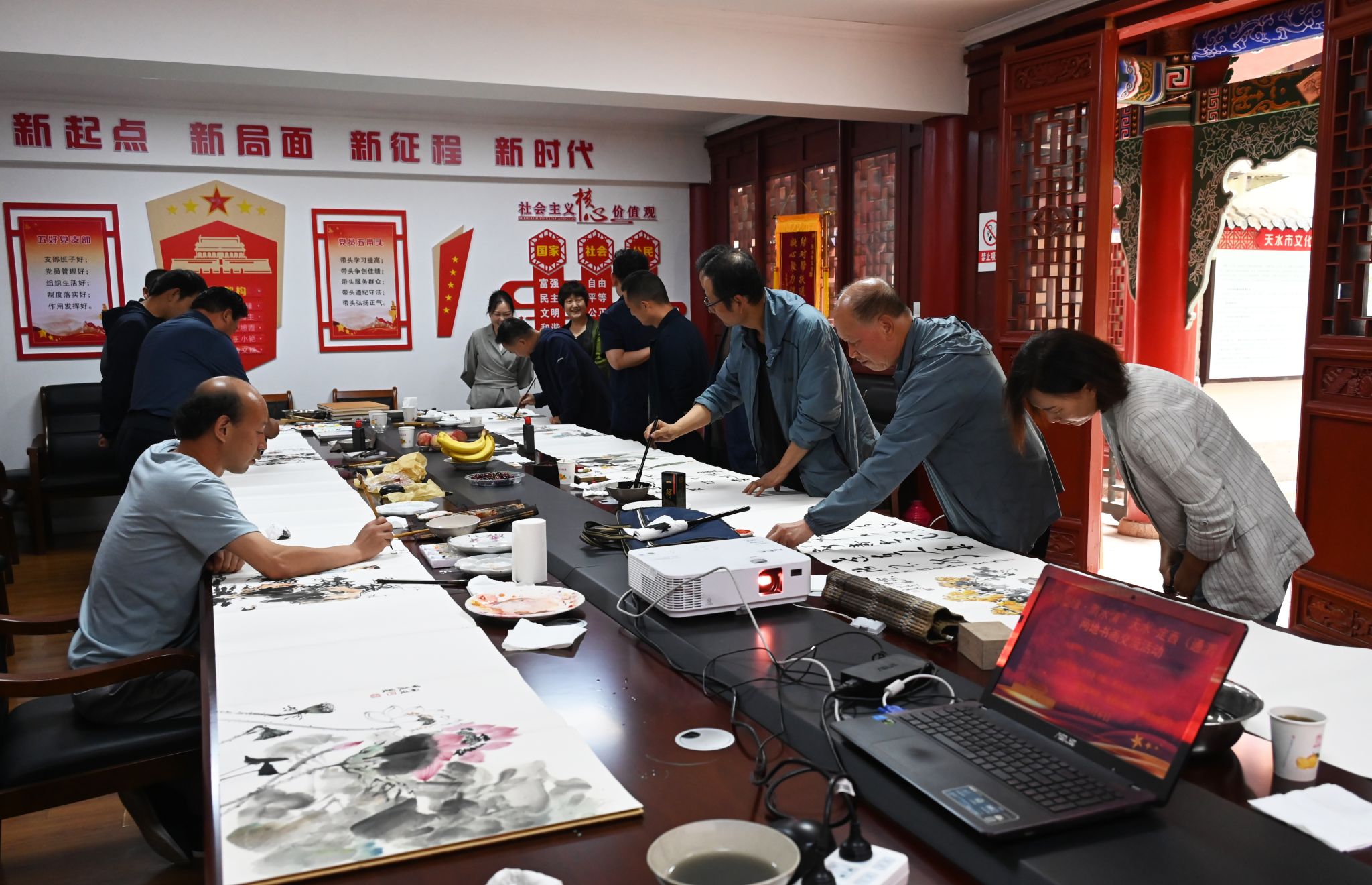 6月6日,为宣传习近平文化思想,促进地方文化交流,由天水市文化馆主办,天水市美协、天水市青年美协、通渭县政协、通渭县书协、通渭县美协协办的“翰墨缘•渭水情”天水-定西(通渭)两地书画交流活动在市文化馆举办。