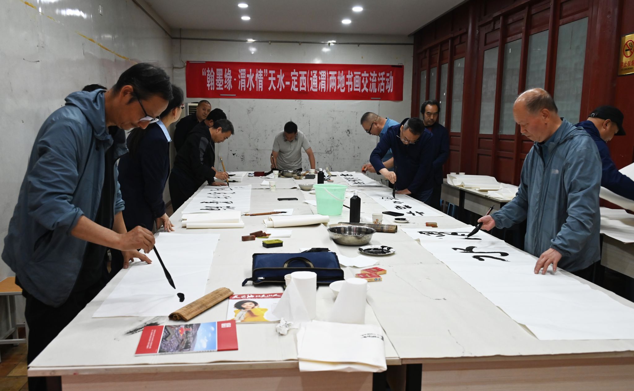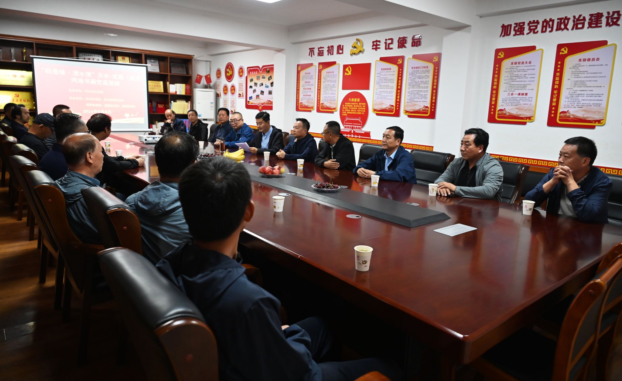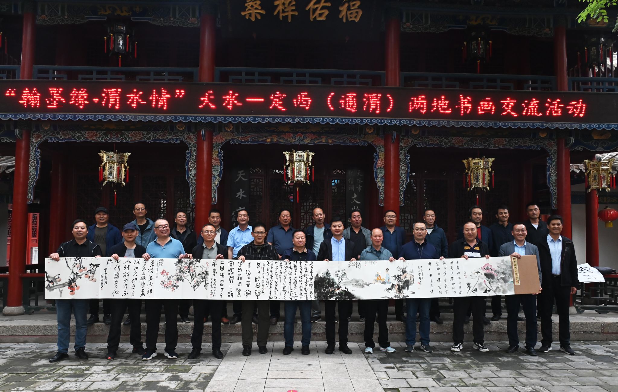 天水市人大常委会副主任何晓斌、市政协副主席杨铁森等相关领导以及天水、定西(通渭)两地书画家二十余人参加了书画交流活动。