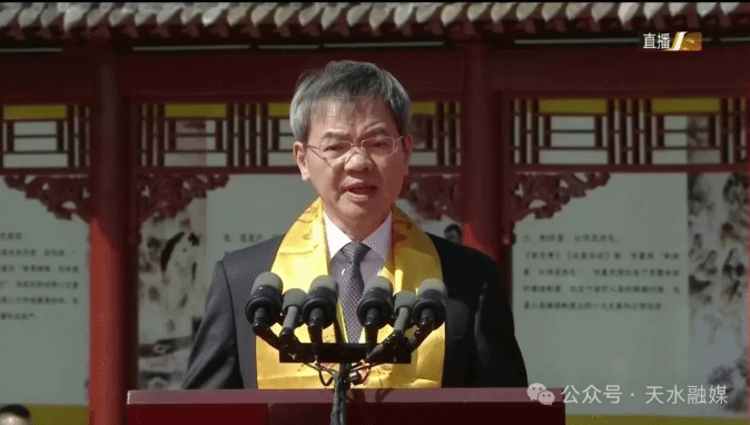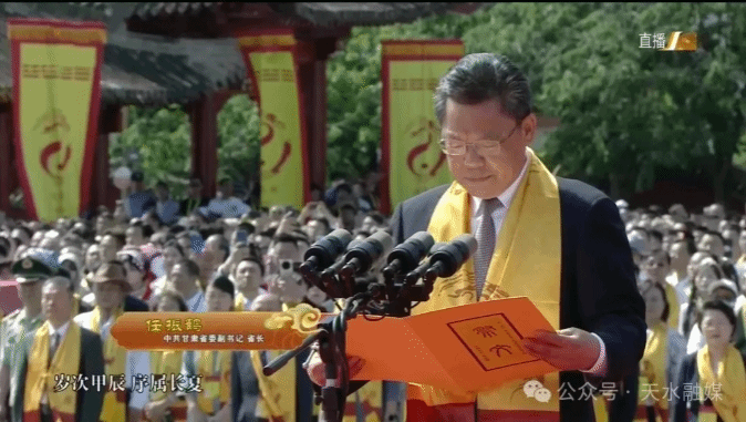▲省政协主席庄国泰主持2024(甲辰)年公祭中华人文始祖伏羲大典仪式并宣布公祭伏羲大典正式开始