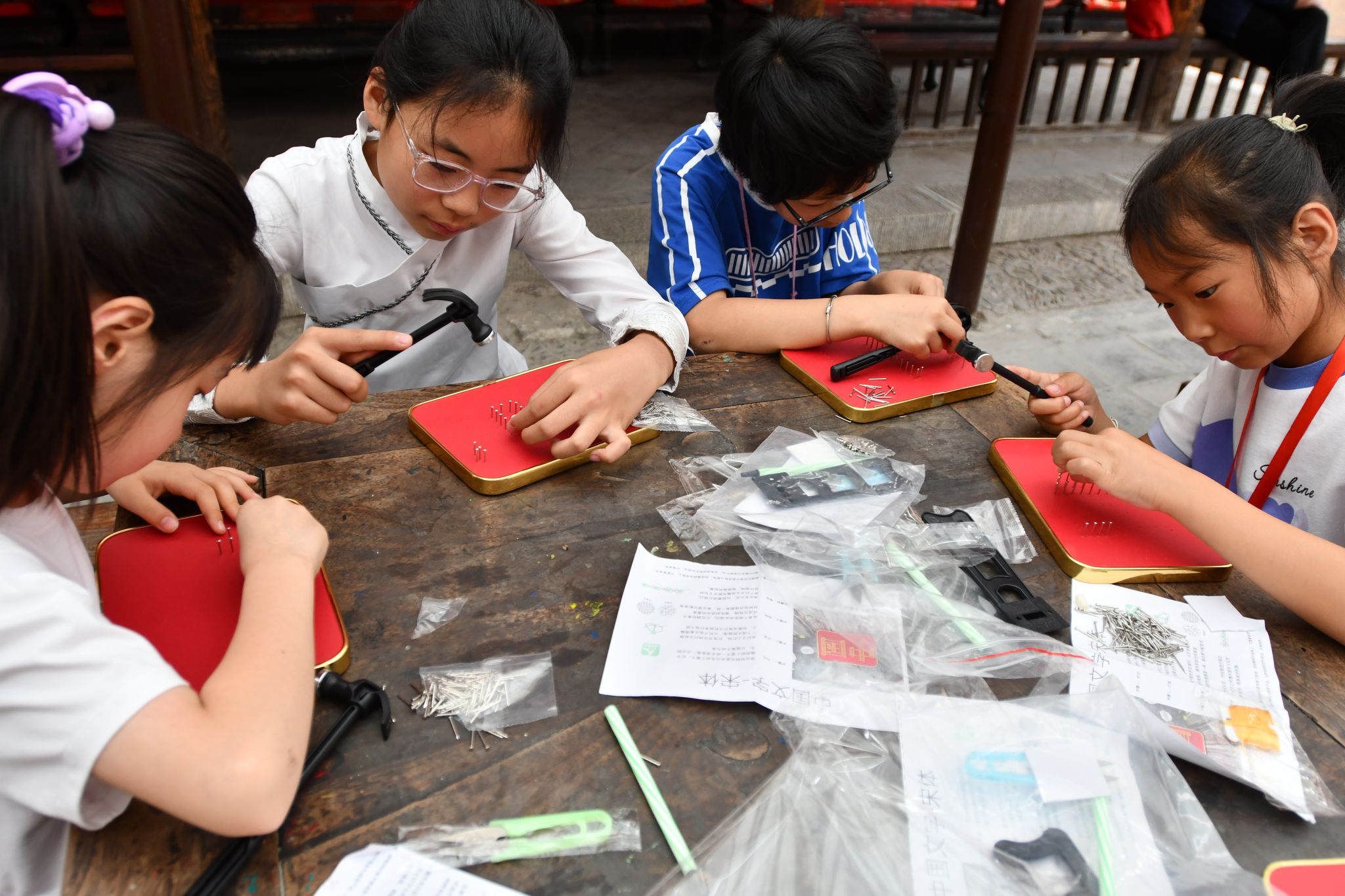 “钉子绕线画”是一种创意手工活动,旨在培养学生的动手能力和创造能力,同时也能够转变学生的学习方式,激发他们的学习兴趣和参与意识。天水民俗博物馆作为我市爱国主义教育基地,近年来积极开展红色主题社教活动,引导少年儿童从小听党话、感党恩、跟党走,厚植爱党爱国爱社会主义的情怀。