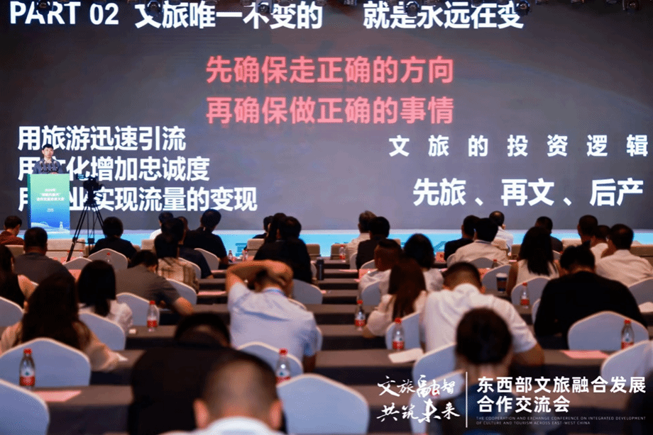 此次合作交流会以“文旅融智·共筑未来”为主题,积极探索文旅融合发展新场景,构建文旅产业发展新局面,分享经验做法、凝聚发展共识,促进津甘两地经济共繁荣。会议设置了主题演讲、圆桌对话、甘肃时间等活动,邀请国内文化旅游领域的政府领导、文旅行业顶尖专家、知名企业及行业组织代表齐聚一堂,共同探讨文旅融合发展的政策措施、战略方向和实践经验,为东西部地区文化旅游产业的融合发展提供新的思路和方向,为甘肃文化旅游产业发展注入新活力。国务院发展研究中心世界发展研究所研究员、副所长丁一凡,中国社会科学院新闻与传播研究所所长胡正荣,中国城市和小城镇改革发展中心副主任赵坤,中国乡村发展基金会副秘书长王军,中国文化报编辑中心主任李琤,清华大学西南濒危文化研究中心副主任张文贺,中国旅游景区协会开发运营专委会副主任王晓峰分别作了主旨演讲,涉及“中欧班列与‘一带一路’共建国家的文旅合作机遇”“加快文旅融合 讲好中国地方故事”“紧抓文旅发展新机遇 助推城乡发展深融合”等主题,重点突出、内容丰富。在圆桌对话环节,专家从文旅出圈、培育文旅新质生产力等角度探讨文旅产业发展的新契机。