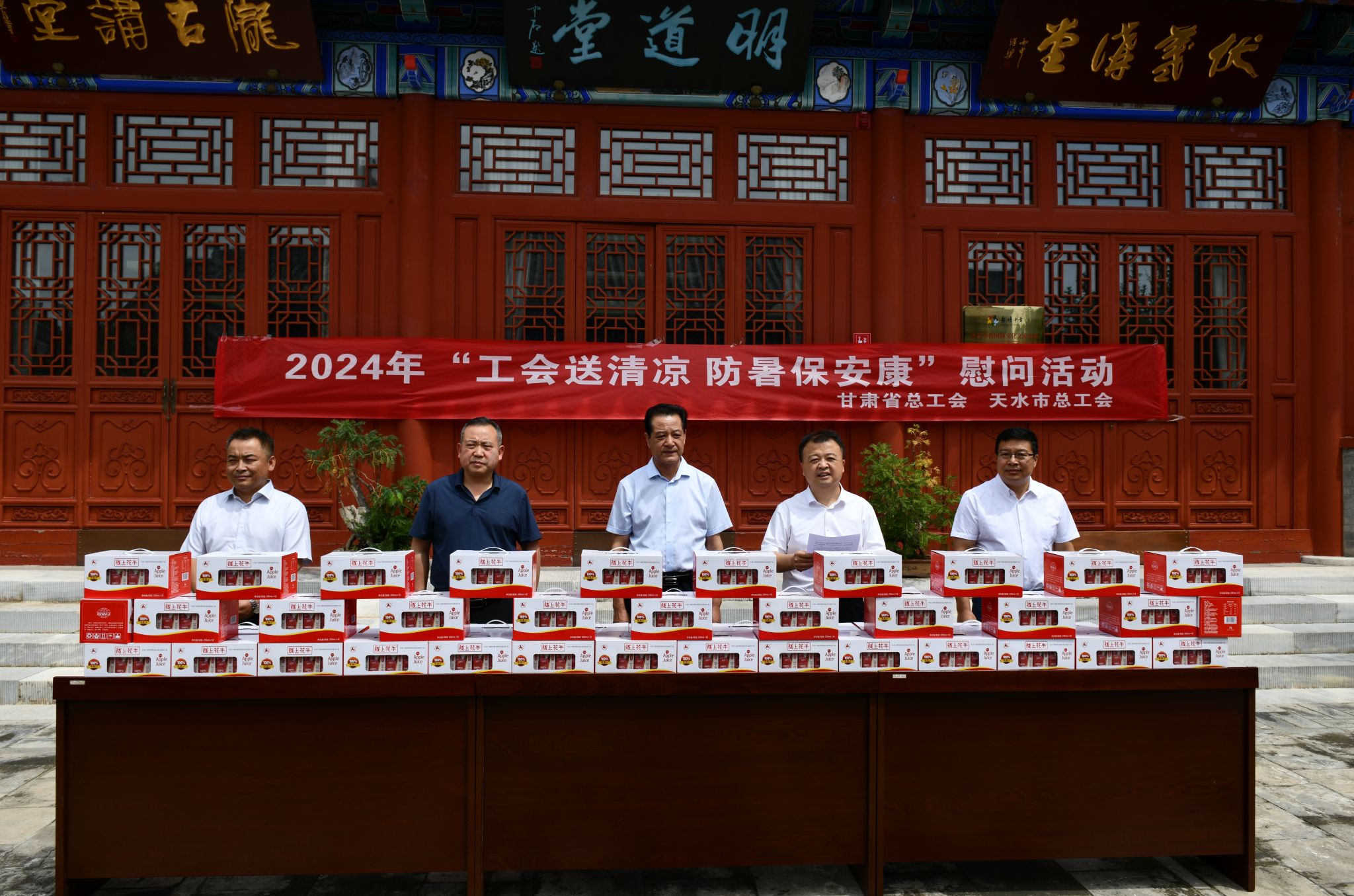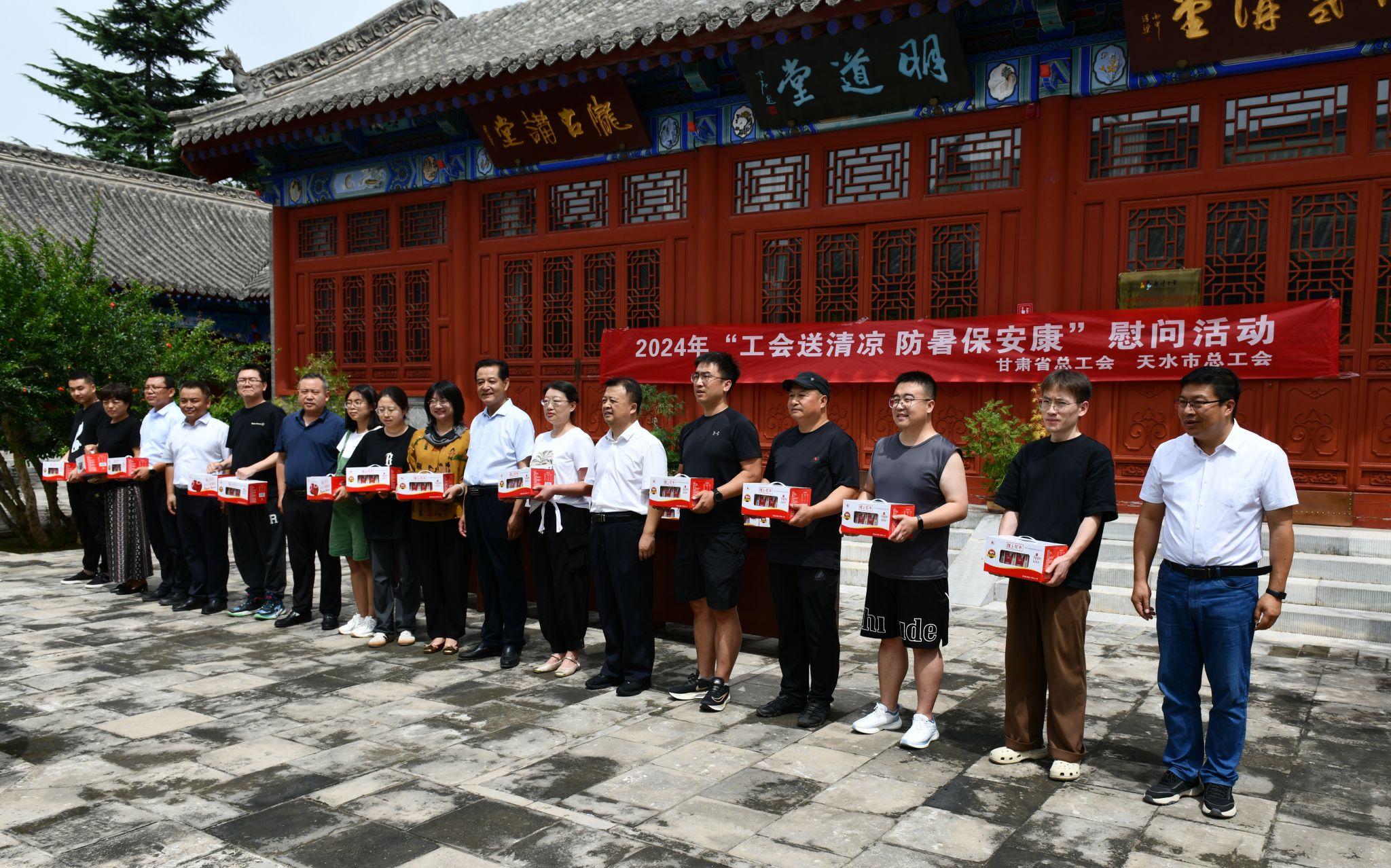 市总工会领导为文旅系统职工代表送上降温清凉饮品,为他们在高温下坚守岗位、为全市文旅事业发展所做出的积极贡献表示衷心感谢和崇高敬意。同时,叮嘱大家作为天水的窗口形象,既要服务好游客,也要注意保护自身安全,做好防暑降温措施。