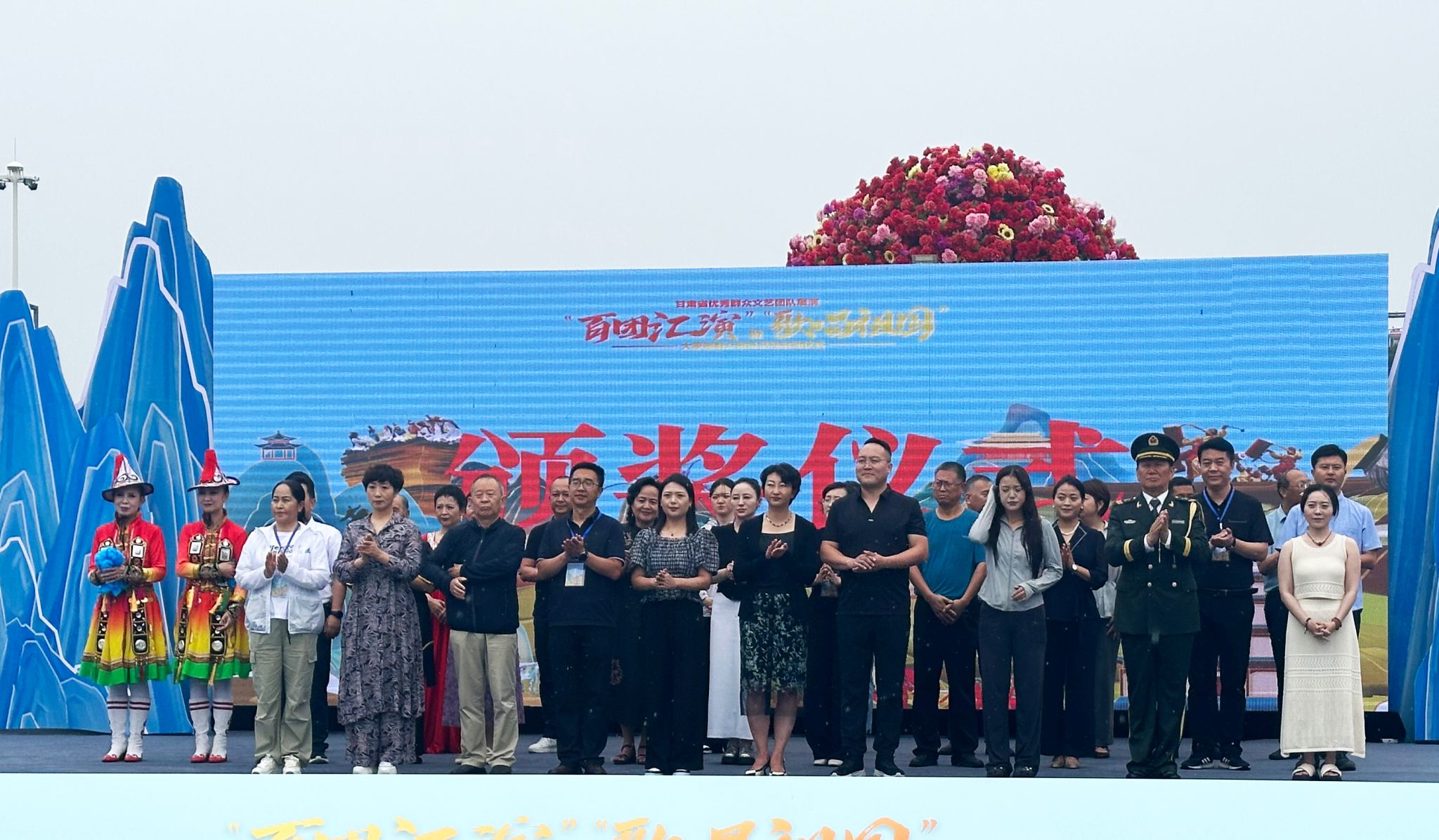 7月29日,为庆祝中华人民共和国成立75周年,加强基层群众文艺人才队伍建设,丰富群众精神文化生活,推动基层公共文化服务高质量发展,由文化和旅游部公共服务司指导,中国文化馆协会、文化和旅游部全国公共文化发展中心、甘肃省文化和旅游厅主办,省文化馆、平凉市文体广电和旅游局、平凉市文化馆、崆峒区文体广电和旅游局承办的甘肃省优秀群众文艺团队展演—“百团汇演”暨“歌唱祖国”大家唱群众歌咏活动启动仪式在平凉市崆峒区绿地广场举办,天水市文化馆组织演职人员参加了本次活动。