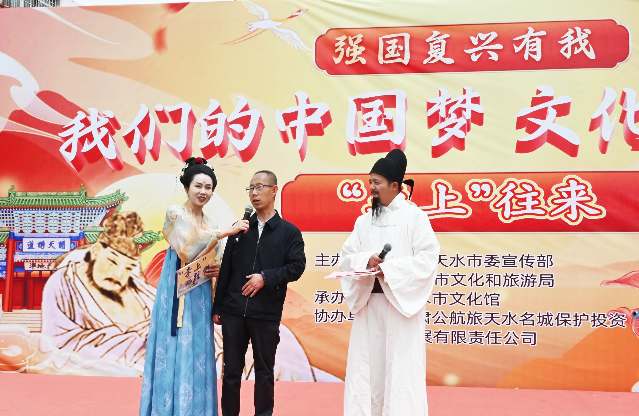 5月5日,为进一步推动天水文旅市场持续升温,提升广大游客的旅游体验感,由中共天水市委宣传部、天水市天水市文化和旅游局主办,天水市文化馆承办,甘肃公航旅天水名城保护投资发展有限责任公司协办的“强国复兴有我”我们的中国梦—文化进万家文艺汇演、趣味系列活动(第八场)在古城启汉楼火热开展。