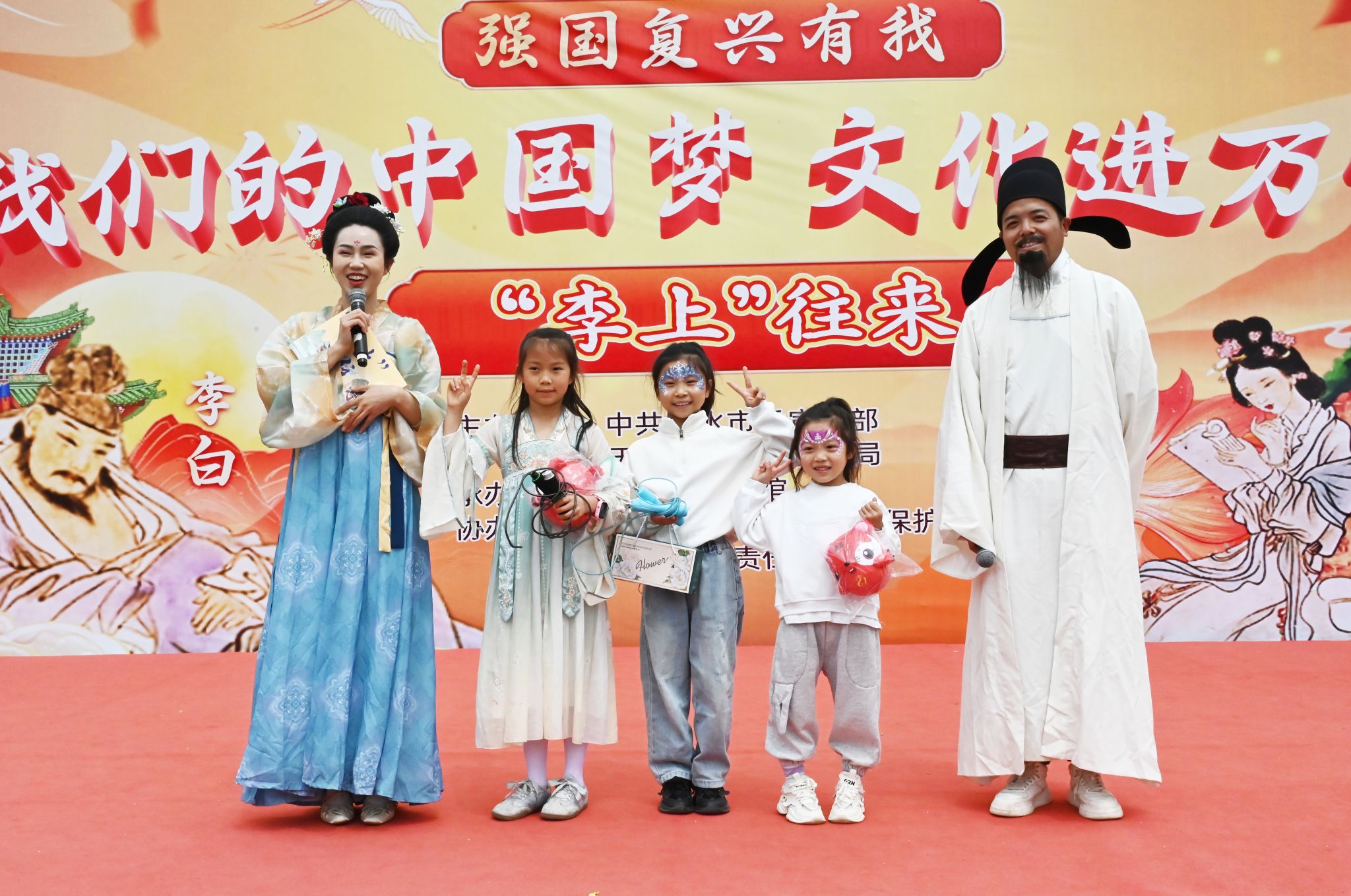 活动期间“李白”与“上官婉儿”通过诗词对答、知识竞猜、趣味游戏等环节与游客开展妙趣横生的互动场面,现场氛围热烈,热闹非凡的场景吸引了近千名观众朋友驻足观看。