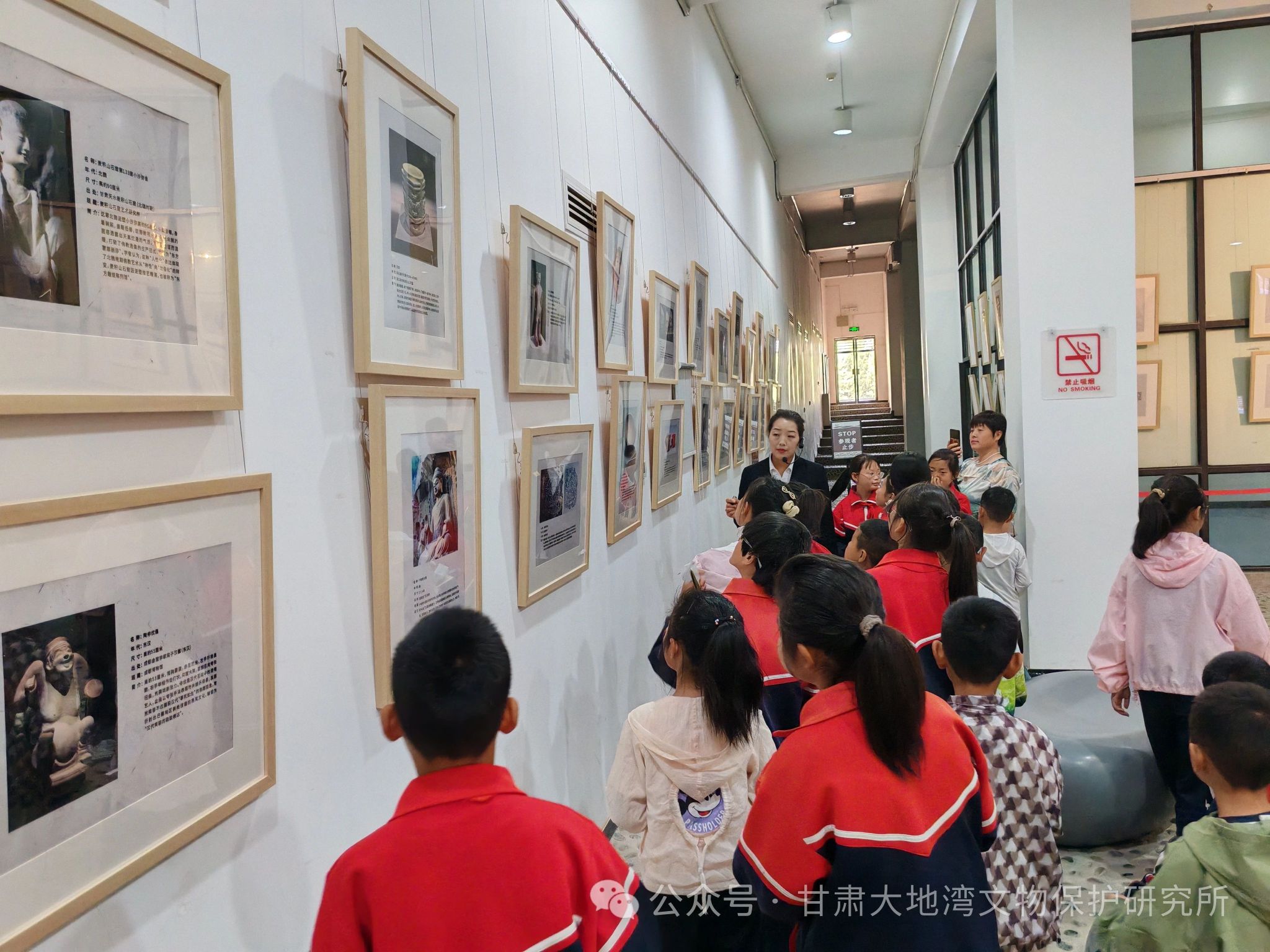 讲解员带领孩子们参观了大地湾博物馆基本陈列“文明序曲——大地湾遗址考古成果展”及“东方微笑:跨越时空的面容”主题文物图片展。活动现场,氛围热烈而浓厚。博物馆的社教老师首先通过生动有趣的讲解,向参与活动的青少年和家长们介绍了国际博物馆日的由来、意义,以及大地湾博物馆的丰富馆藏和历史文化价值。随后,重点围绕拓片技艺展开详细讲解。拓片指将碑文石刻青铜器等文物的形状及其上面的文字、图案拓下来的纸片,是我国一项古老的传统技艺,是使用宣纸和墨汁,或者朱砂等将碑文、器皿上的文字或图案,清晰地拷贝出来的一种技能,是记录中华民族文化的重要载体之一。
