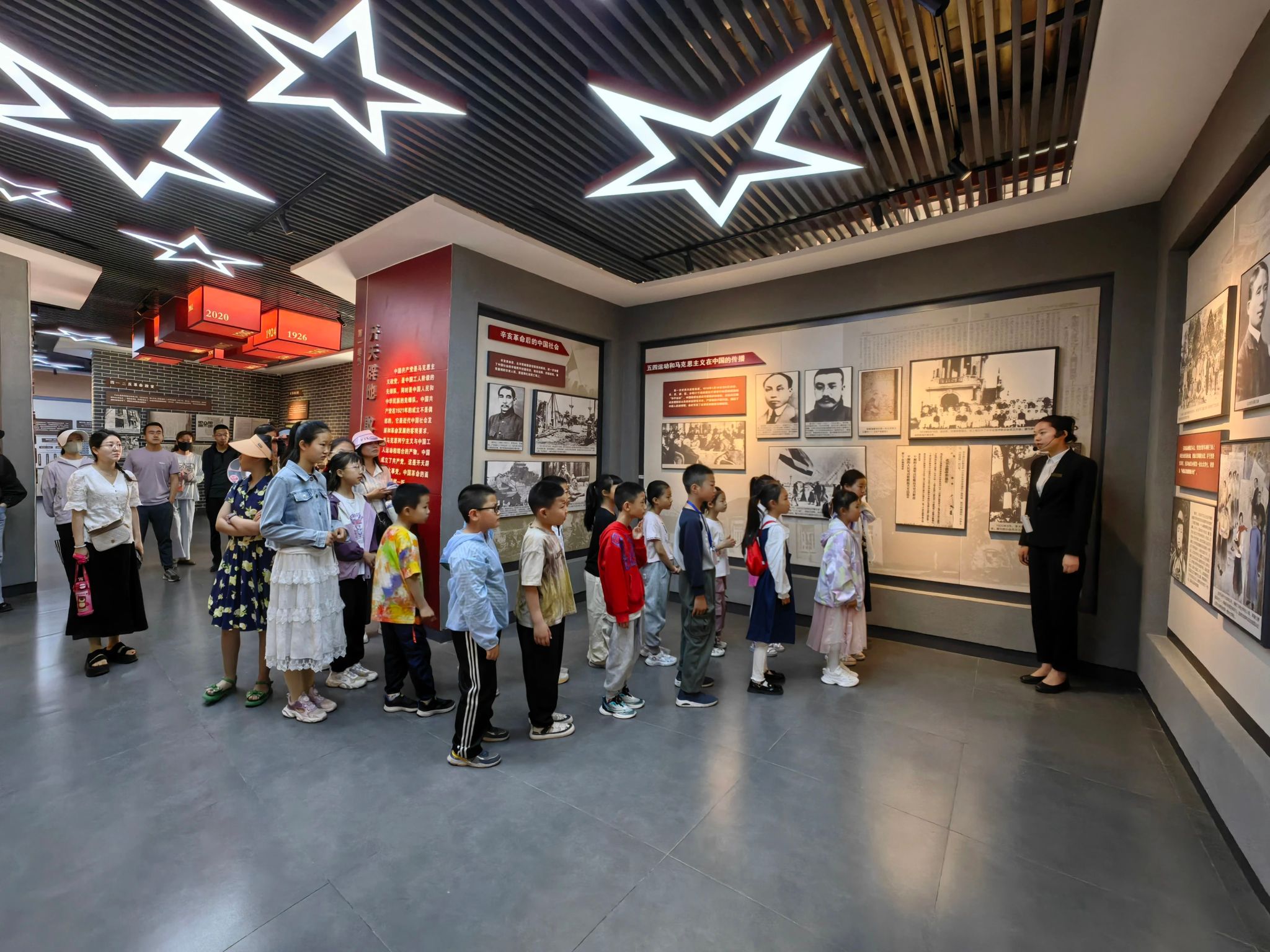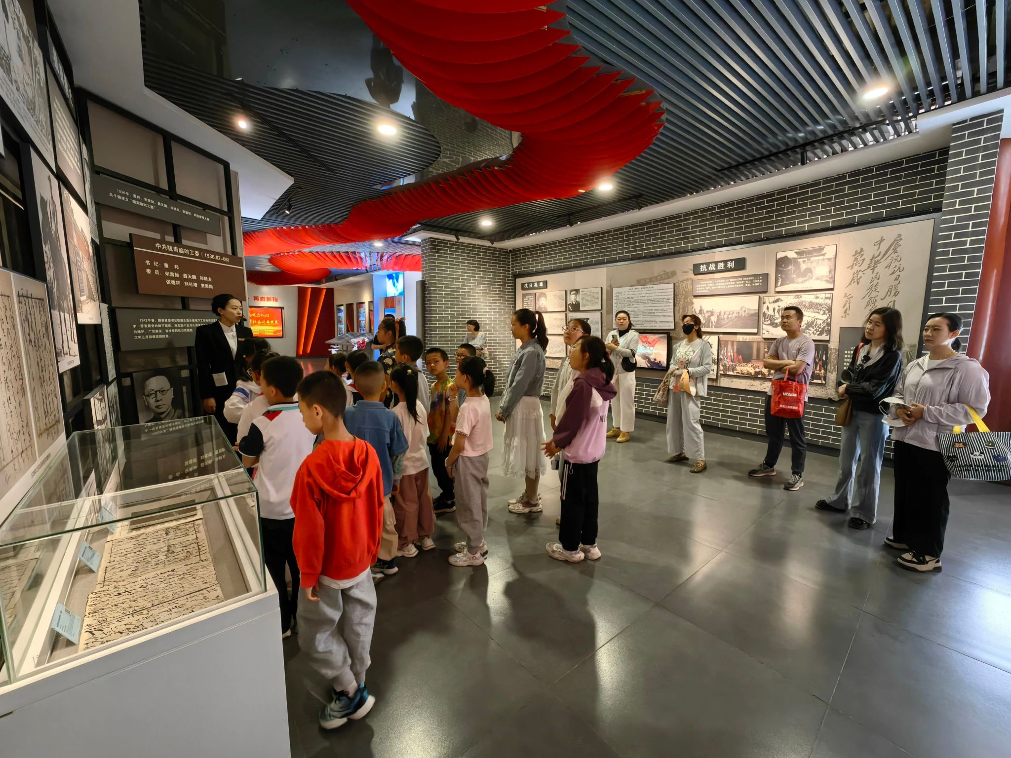 活动首站,孩子们跟随讲解员走进展厅。通过讲解员生动的讲述,了解革命年代的峥嵘岁月。展柜中斑驳的文物、墙面上珍贵的史料照片,将红色精神具象化。一位小朋友指着展品说道:“原来英雄们用的东西这么简陋,但他们却做了那么伟大的事!”。这种直观的爱国主义教育,让历史的种子悄然生根。