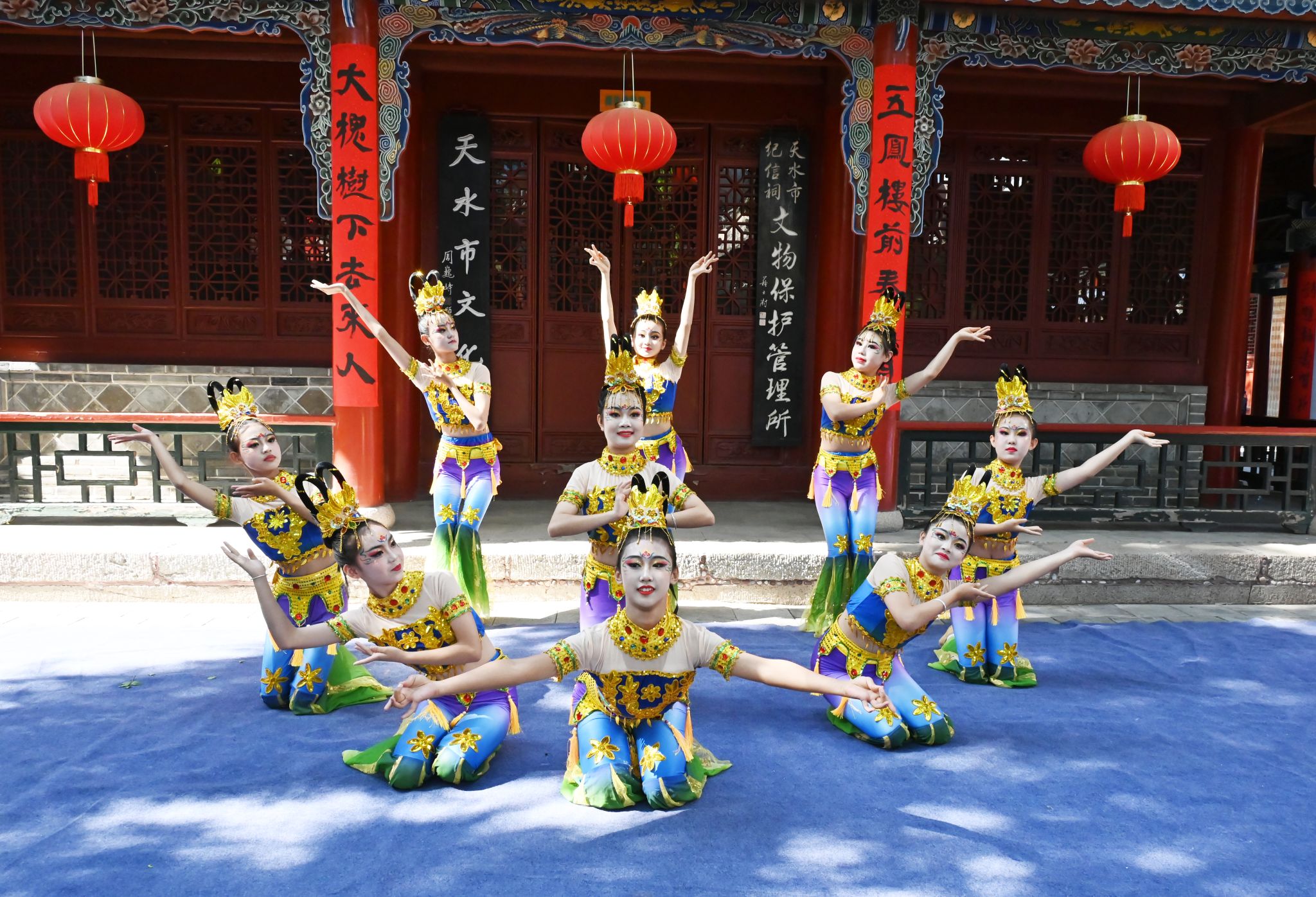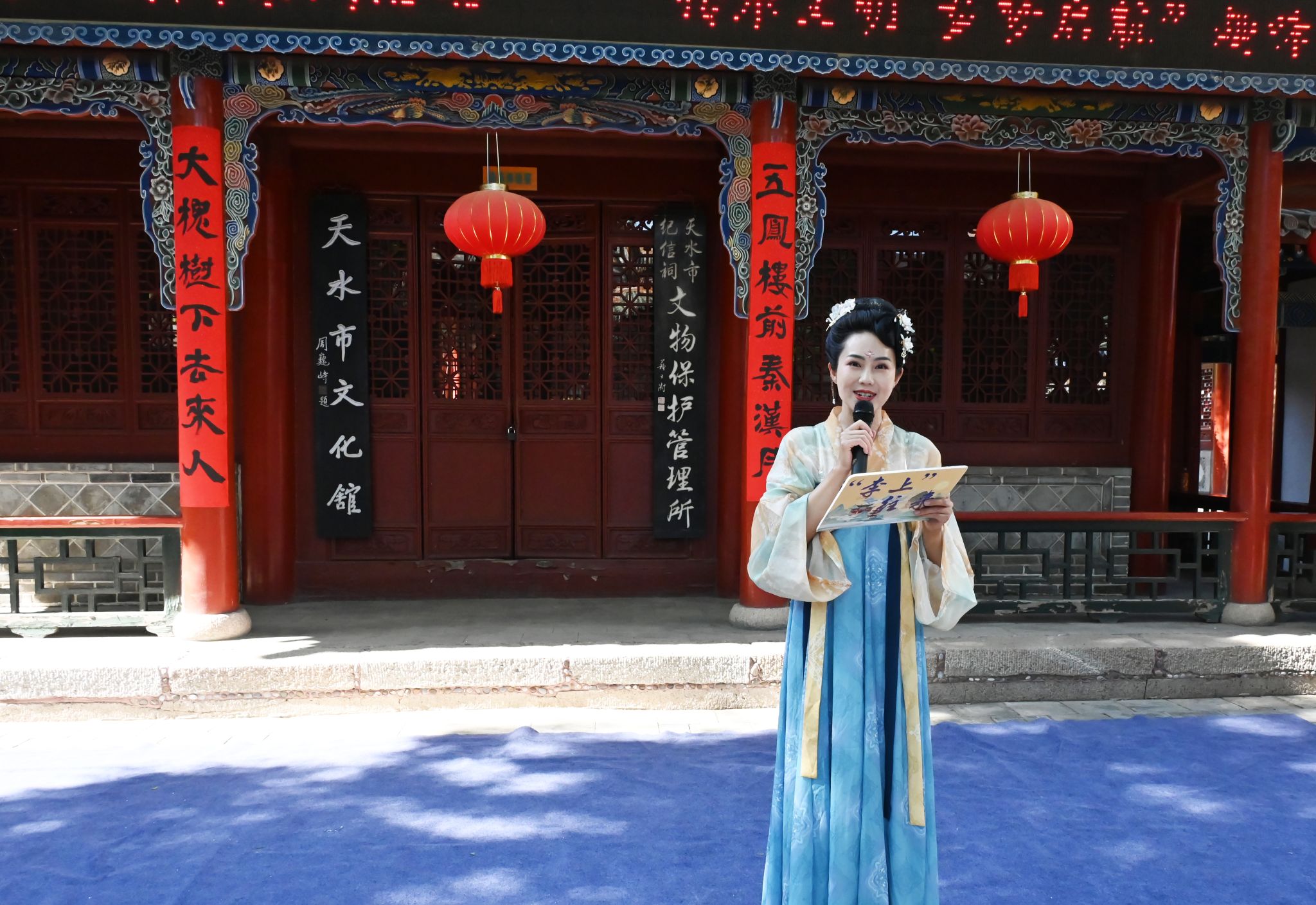 活动在一曲开场舞《春三月》的灵动旋律中正式拉开帷幕。小演员们身着翠绿的纱裙,以轻盈优美的舞姿生动地演绎出万物复苏时那盎然的生机。《一双小小手》《过马路》等幼儿舞蹈以及女子独舞《雨林》、群舞《扇语春风》《贝叶飘香》《画壁绝响》等一系列精彩节目轮番上演,现场的掌声和喝彩声不绝于耳。小品《花牛村的金果果》更是通过方言的巧妙运用和幽默的故事情节,讲述了天水花牛村果农卖苹果的故事,接地气的表演引发了观众的强烈共鸣。在后来的互动环节,长达15分钟的“诗词对答”活动中,孩子们踊跃抢答《唐诗三百首》中的经典名句,观看群众也纷纷参与其中,演出现场瞬间又变成了一场紧张激烈的“诗词擂台赛”。
