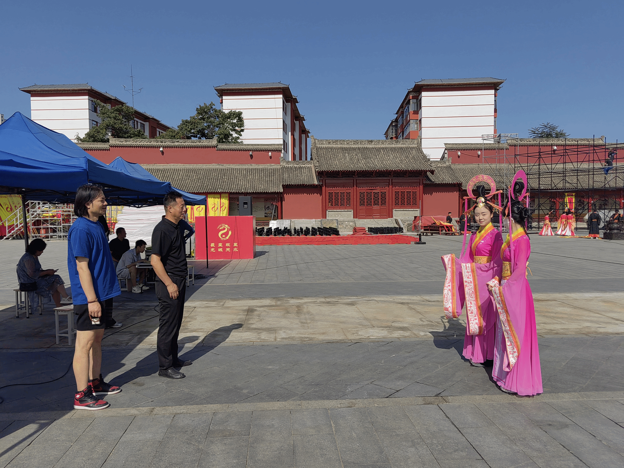 祭祀乐舞《羲皇颂》主要由《曦开迎圣》《厥功大德》《万代敬仰》《福佑中华》四段祭祀舞蹈组成,以汉朝礼祭礼仪为基础形象。今年5月底重新制作了翎子舞段的服装,购置了演出用的鞋靴和舞美道具,为节约开支对其他服装、龙旗等进行了清洗和维修,保证正式演出时服装华美、舞美大气整洁。