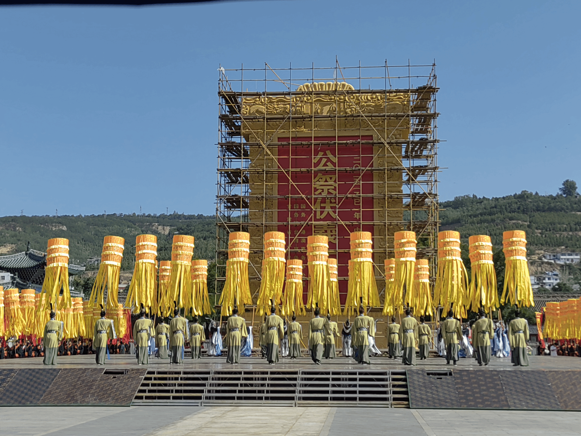 2025(乙巳)年公祭中华人文始祖伏羲大典将于6月21日在天水伏羲广场举行,本次公祭大典乐舞告祭《羲皇颂》的首次带装排练于6月16日早上在伏羲庙广场有序进行。公祭伏羲大典乐舞告祭演出从4月下旬开始筹备,5月初进入排练阶段,6月10日正式进入现场排练阶段。