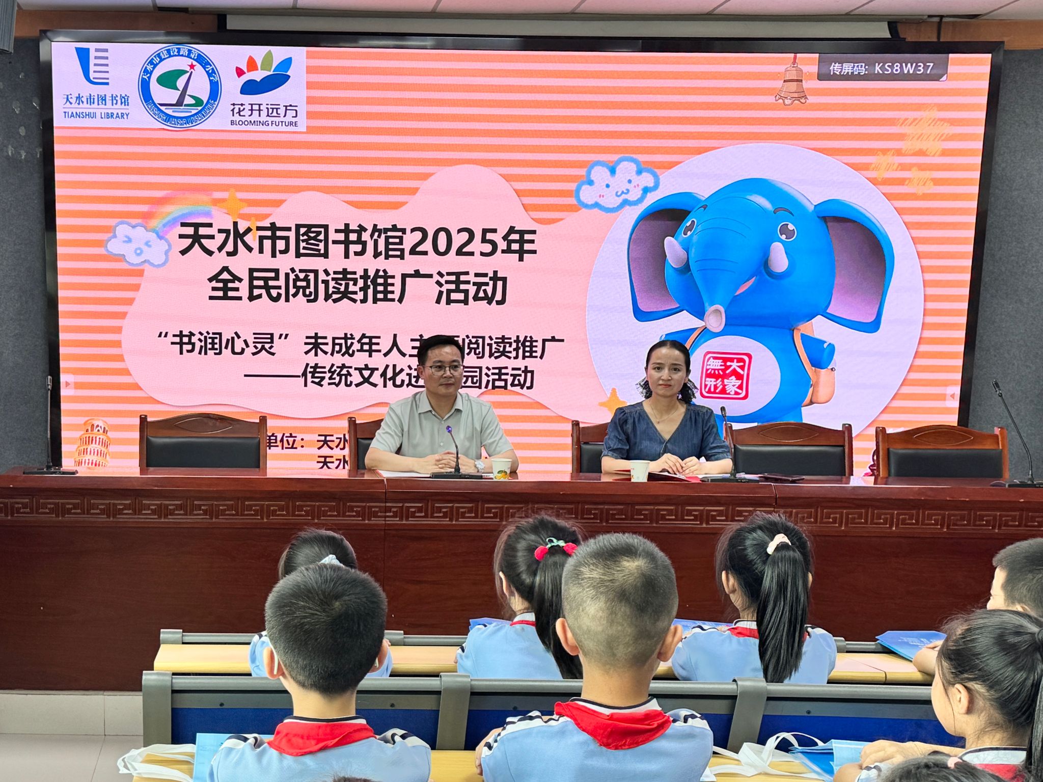 书香盈满人生路,躬读诗书正当时。为了更好地开展公共文化服务,充分发挥图书馆社会教育功能,促进书香校园建设,6月19日下午,天水市图书馆携手花开远方课程中心,走进天水市秦州区建三小学,举办了以“书润心灵”为主题的校园阅读推广活动。活动以现场授课、市图书馆公众号直播的方式进行,线上线下共计400余人参加。