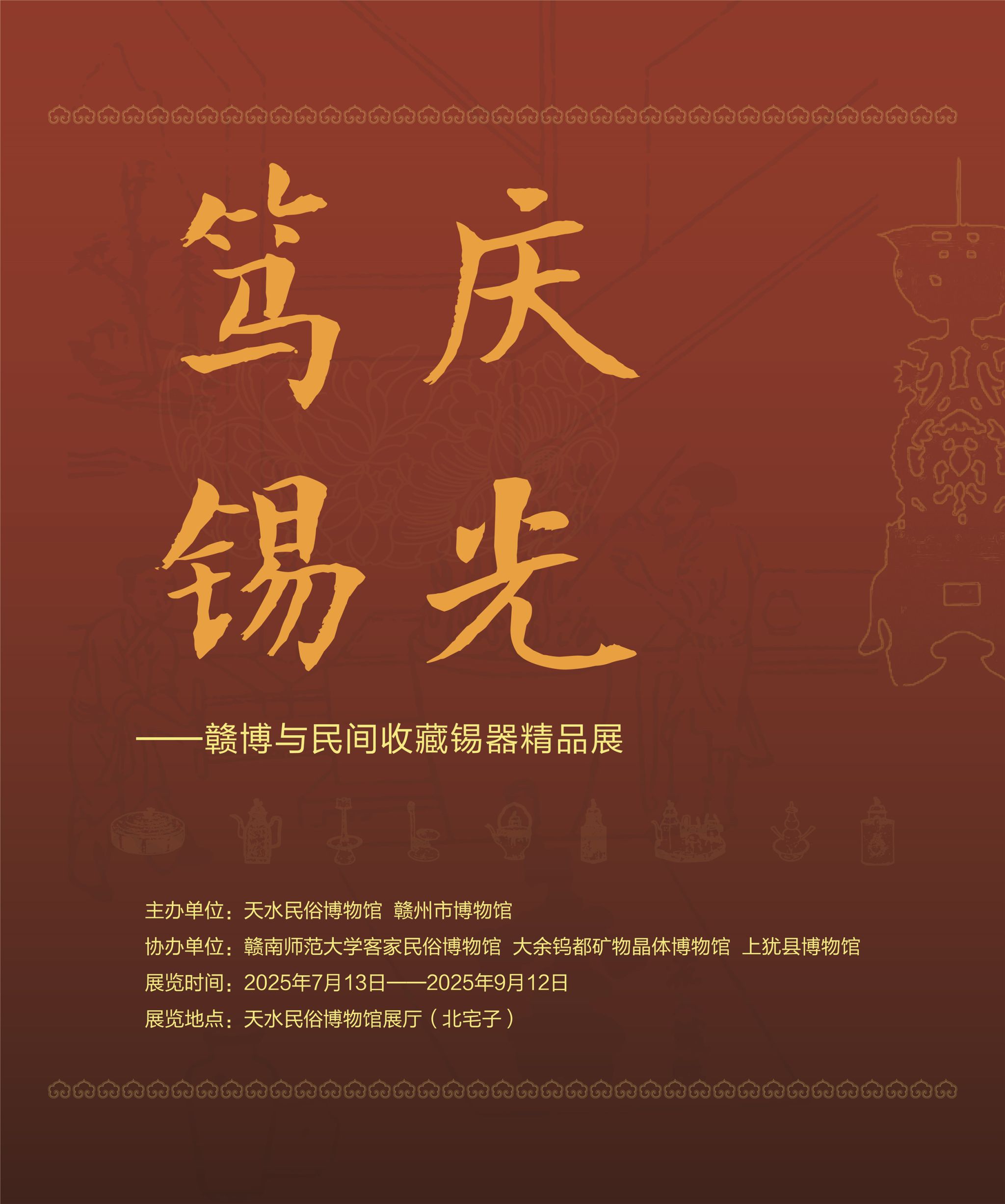 7月13日,“笃庆锡光——赣博与民间收藏锡器精品展”在天水民俗博物馆临时展厅(北宅子)正式开展。此次展览由天水民俗博物馆与赣州市博物馆联合主办,赣南师范大学客家民俗博物馆、大余钨都矿物晶体博物馆、上犹县博物馆协办,展期将持续至9月12日,为期两个月。