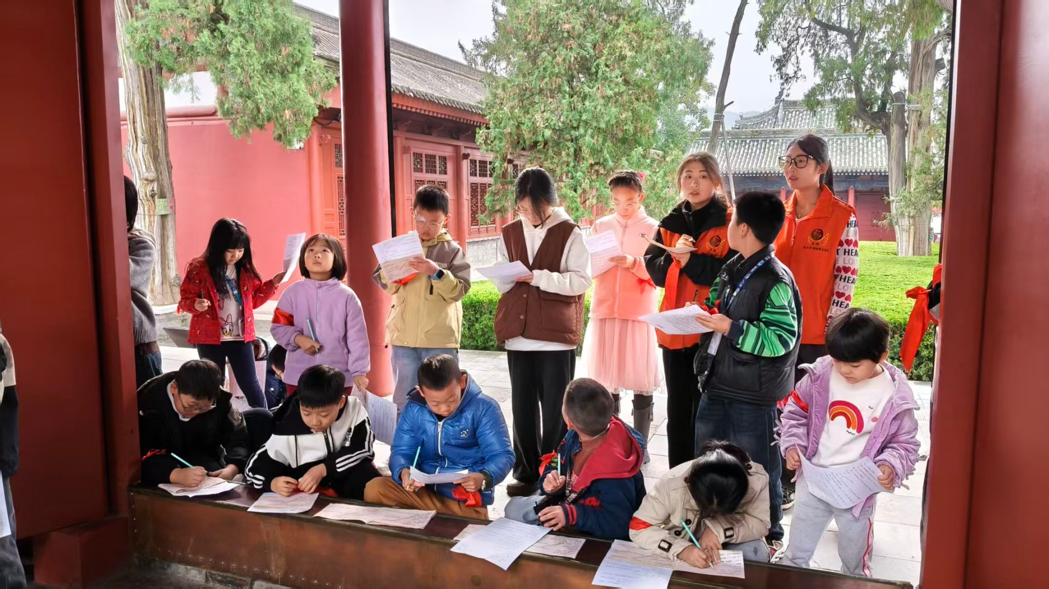 寻宝环节成为全场高潮。青少年们分成小组,手持“线索卡”与“侦探手册”开启寻宝任务:根据线索定位对应匾联,不仅要记录匾联文字,还需手绘简易图案留存发现。寻宝过程中,各组分工协作、热烈研讨,展现出极强的团队凝聚力。