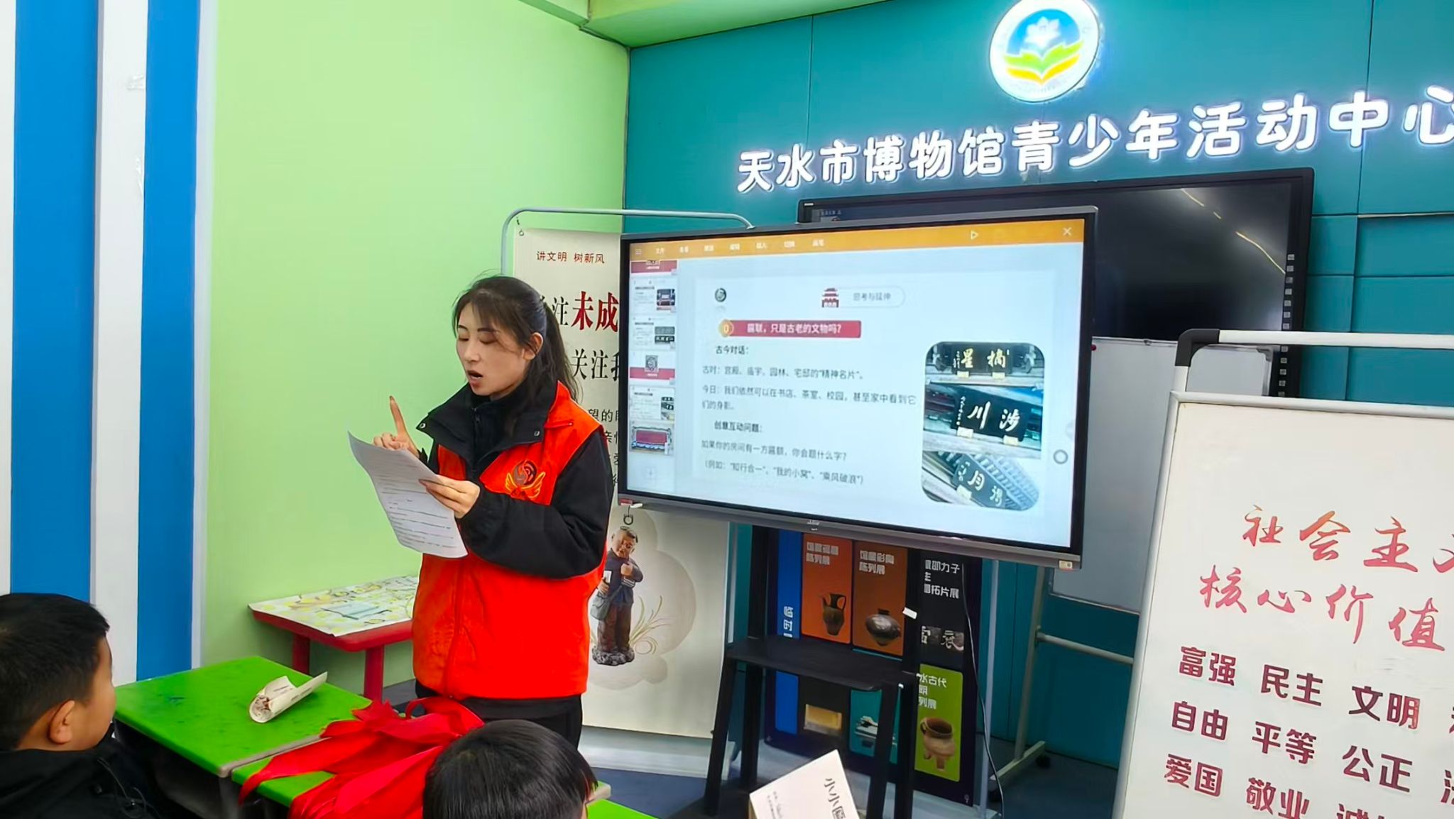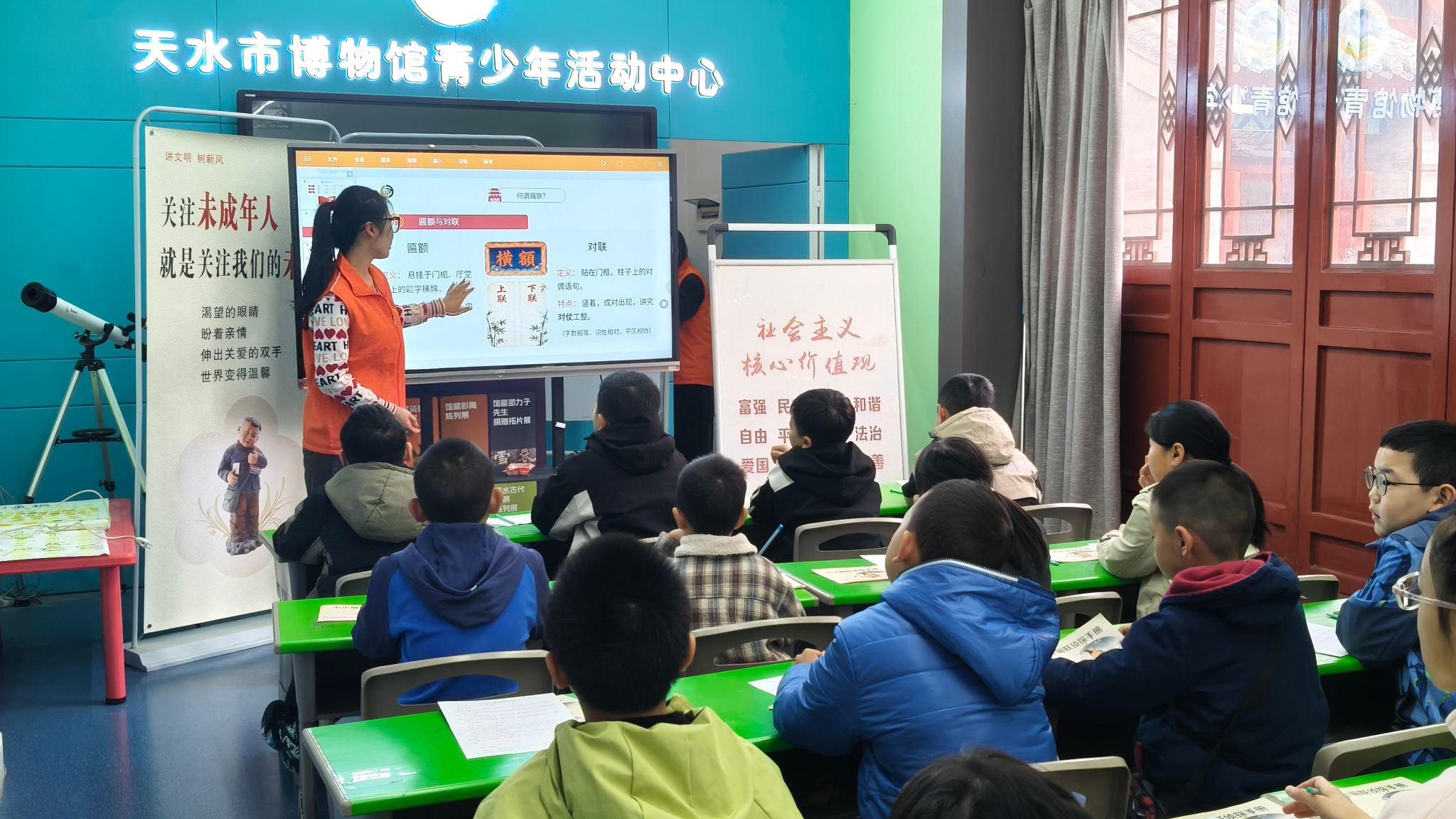 活动开篇,社教专员以“嘉风德韵——天水市博物馆馆藏匾联精粹展”展览PPT为引,用图文并茂的形式拆解匾联的历史渊源、文化内涵与艺术价值;随后聚焦天水伏羲庙匾联,将伏羲文化与地方特色深度结合,为“小侦探”们筑牢知识基础,做好探宝准备。