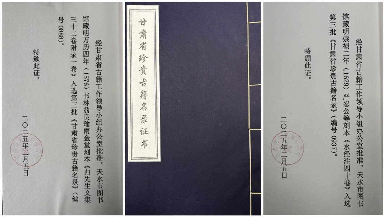 10月22日至24日,“2025甘肃省图书馆学会年会”在陇南举办,会议颁发了第三批甘肃省珍贵古籍名录证书,天水市图书馆又有5部古籍入选省级珍贵古籍名录。