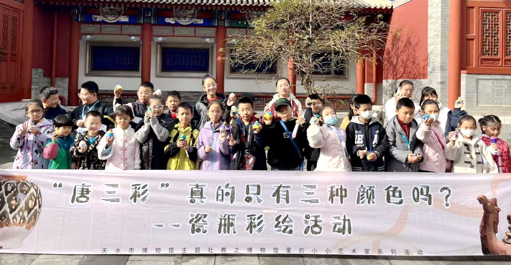 “唐三彩”是唐代陶瓷工艺的璀璨瑰宝,以绚丽色彩与生动造型尽显盛唐气象。然而,不少人误以为“唐三彩只有三种颜色”,使其工艺魅力被低估。为传承唐代陶瓷工艺文化,让青少年直观感受传统技艺的精妙,天水市博物馆特别举办“‘唐三彩’真的只有三种颜色吗?——瓷瓶彩绘社教活动”,带领青少年一同走进“唐三彩”的多彩世界。