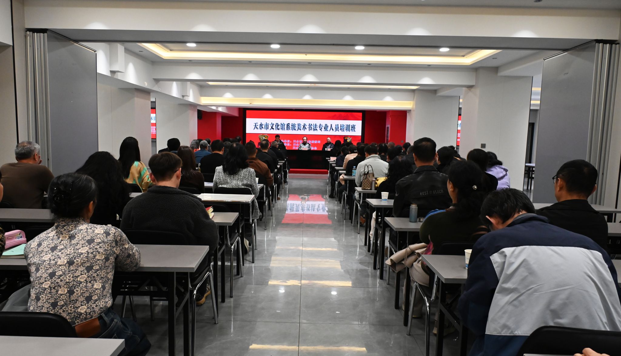 11月12日上午,由天水市文化馆举办的2025年全市文化馆系统美术书法专业人员培训班正式开班。本次培训班最大的亮点是邀请了北京画院原副院长、国家一级美术师、中美协理事、中国工笔画学会副会长、中国画学会理事、北京美协理事、北京高级职称评审委员莫晓松先生,以及北京画院专业画家、中国美术家协会会员、中国工笔画学会会员,国家一级美术师、四川省工笔画学会副会长、成都当代工笔画研究会副会长安华平先生,两位艺术大家联袂授课,吸引了来自全市两区五县文化馆(站)以及全市书画界的120余名书画家和业务骨干参加。