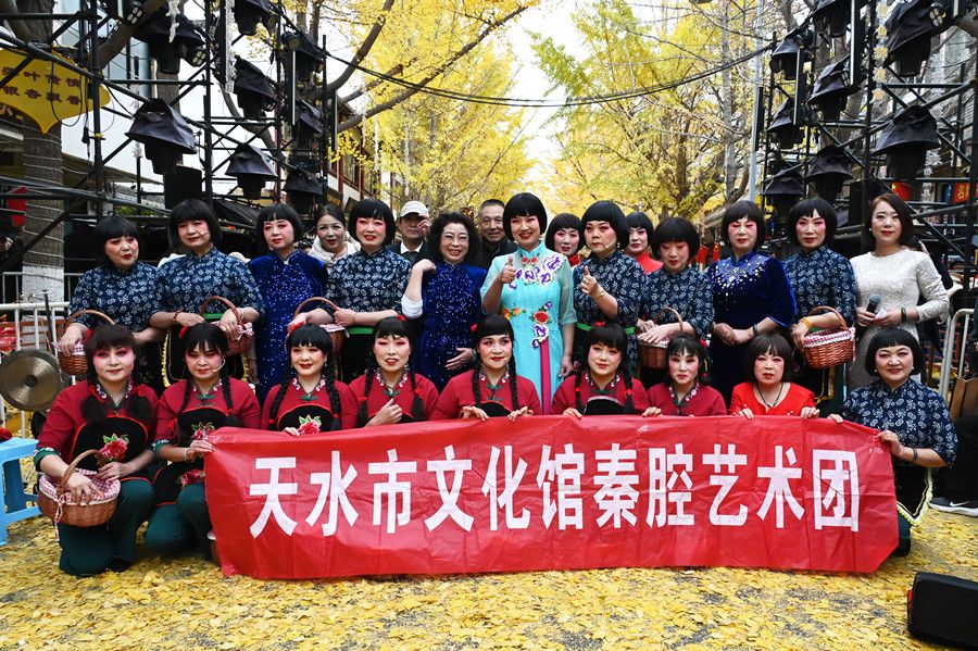 11月16日,在“‘银’客天下,‘杏’福秦州”第七届文化旅游宣传周期间,天水市文化馆秦腔艺术团组织全体学员举办了“秦腔古韵响彻黄金大道,公益培训硕果润泽民心”秦腔专场演出活动。一阵阵高亢激昂的秦腔古韵在此响起,为这幅绝美的自然画卷注入了厚重的文化灵魂,吸引了众多市民游客驻足欣赏。