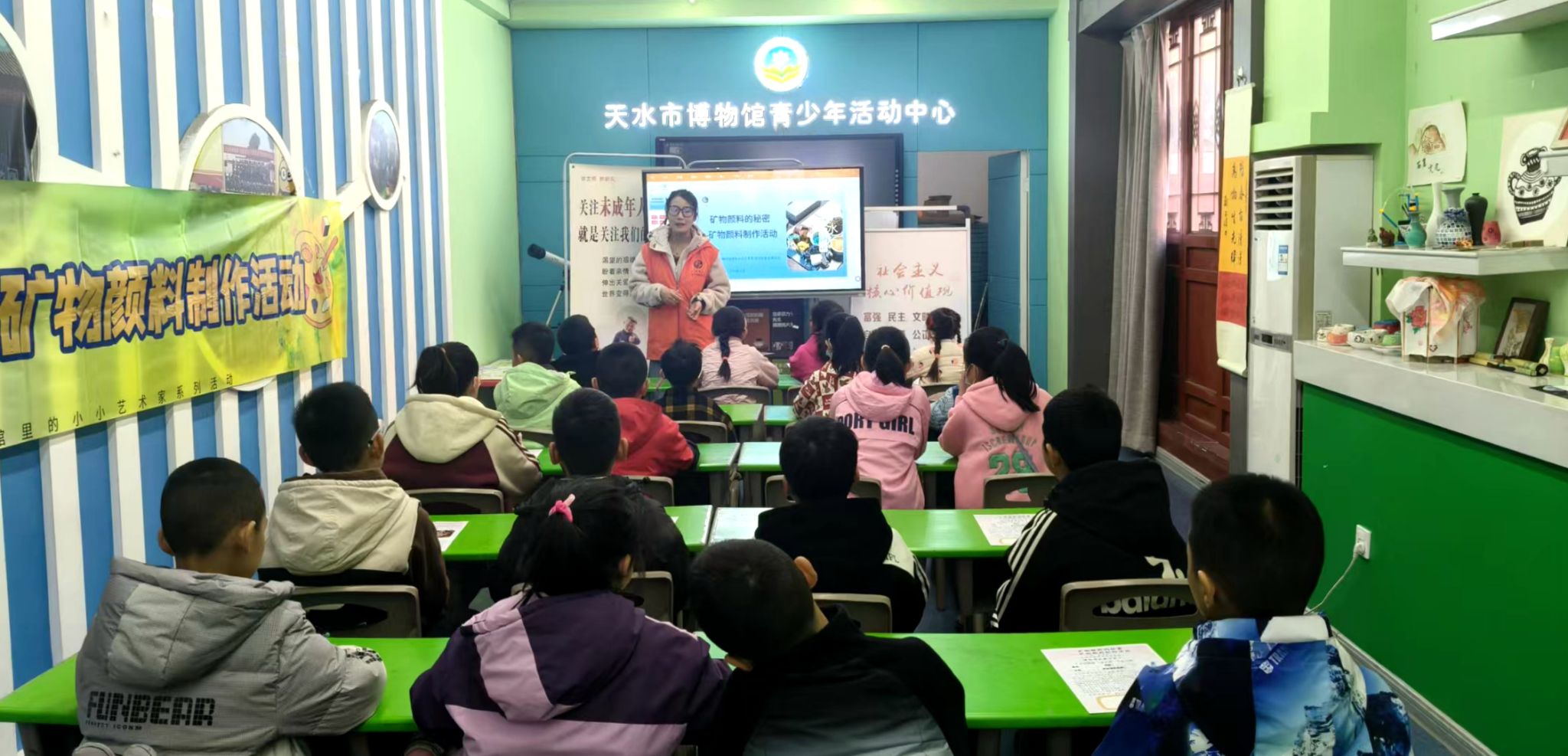 你知道古画中绚丽的朱红、青绿从何而来吗?你好奇古代建筑上历经风雨仍不褪色的秘密吗?近日,天水市博物馆策划开展了“矿物颜料的秘密”主题社教活动,以一场融合知识讲解、实地参观与动手体验的创新课堂,带领30名青少年走进传统色彩的奇幻世界,亲手制作矿物颜料,感受中华传统工艺的智慧与魅力。