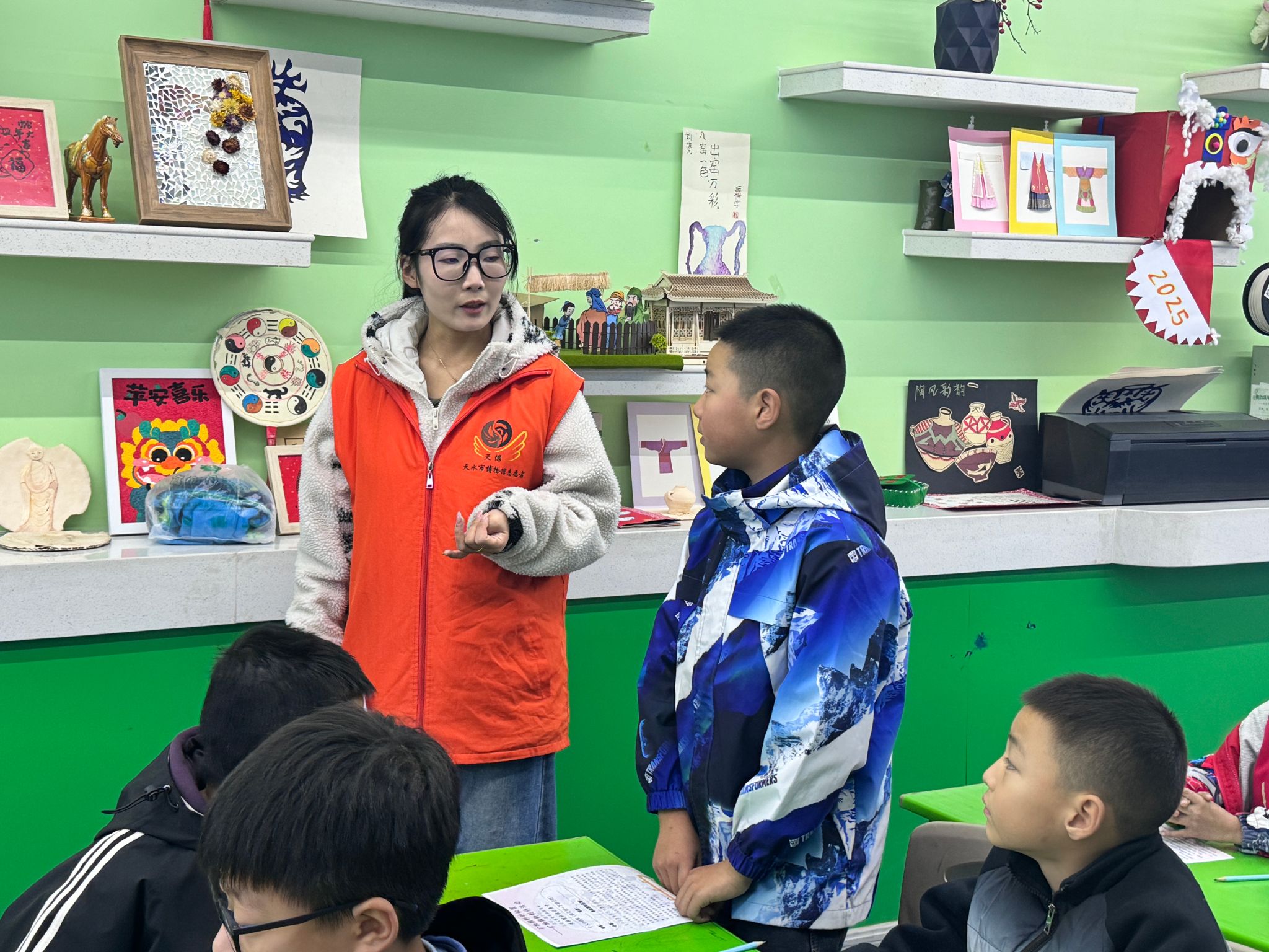 随后,带领孩子们走进伏羲庙实地观察团龙槛窗木雕。亲眼见证矿物颜料历经多年不褪色的神奇,把刚学到的知识和实物对应起来,孩子们一边辨认朱红、青绿等颜色,一边惊叹于矿物颜料抗褪色的神奇特性,在观察中深化了对传统工艺的理解。