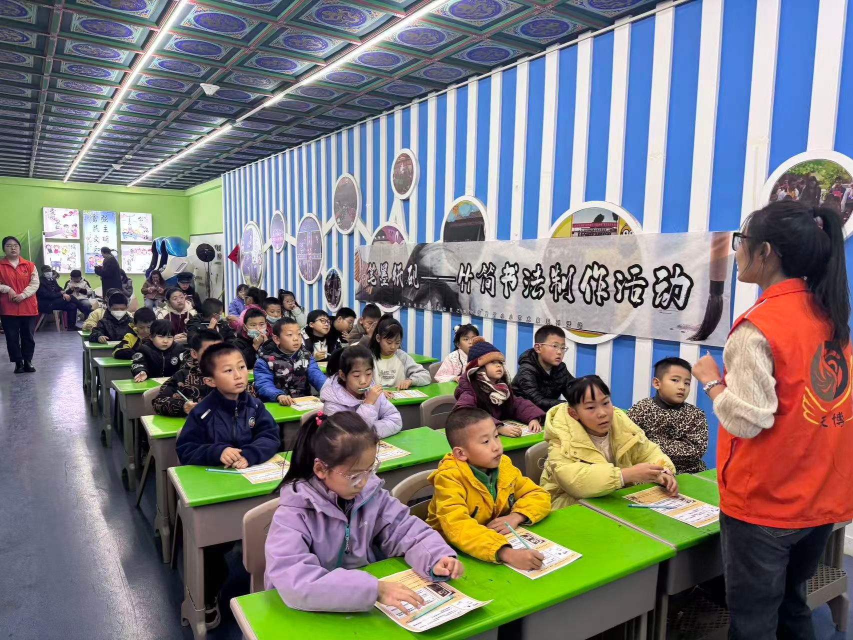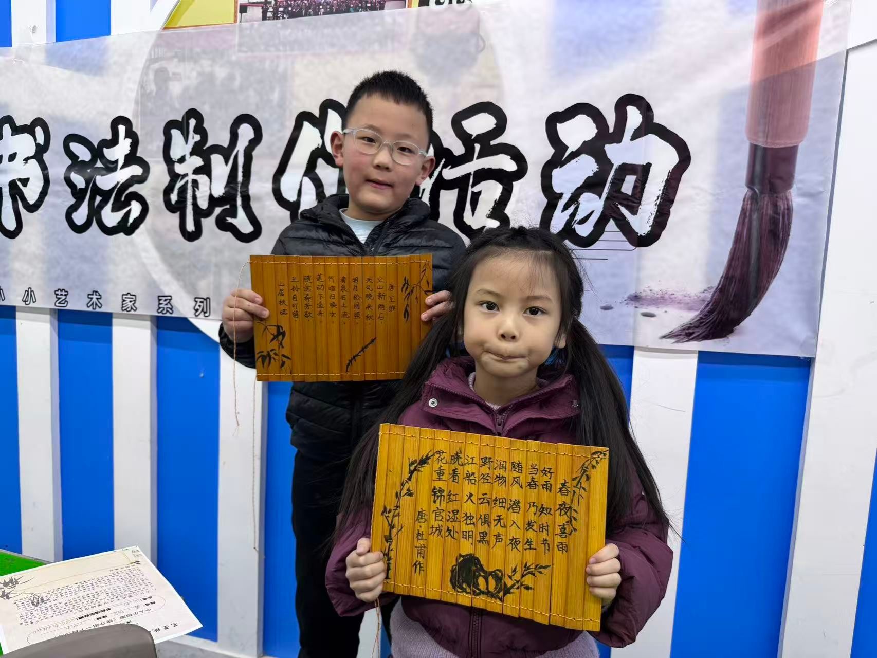 实践环节里,宣教老师耐心示范竹简拼接、毛笔握法、墨汁调试及书写要点。青少年们兴致盎然,蘸墨挥毫在竹简上书写经典诗词与吉祥文字,现场交流互助,一幅幅兼具古韵与童真的作品陆续诞生。