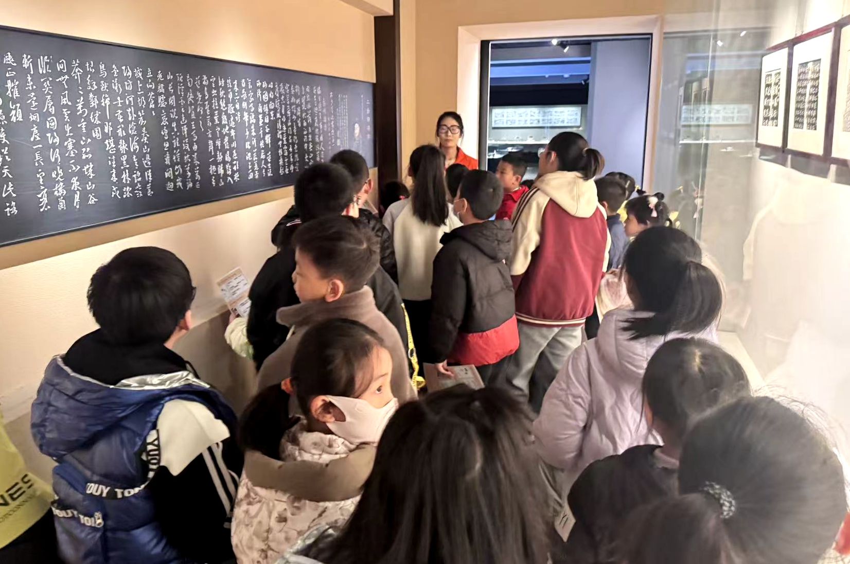 随后,宣教老师带领大家走进书画碑拓展区,围绕馆藏古代书法家真迹、珍贵拓片等展品,细致引导青少年感受笔墨线条的韵律之美,解析作品的创作背景与书法风格,让原本静置展柜的文物化作可触摸、可感知的“活教材”。