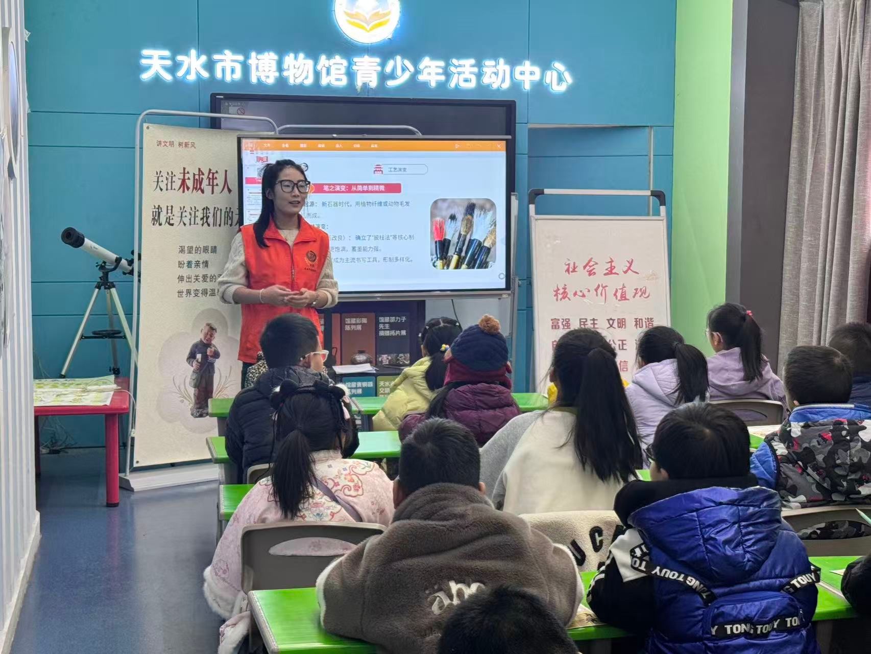 为引导青少年探寻文房四宝的文化内涵,感受传统书写艺术的独特魅力,天水市博物馆精心策划“笔墨纸砚——竹简书法制作”社教活动,以观展学习和动手实践”的沉浸式形式,让千年传统书写文化在青少年指尖焕发生机。