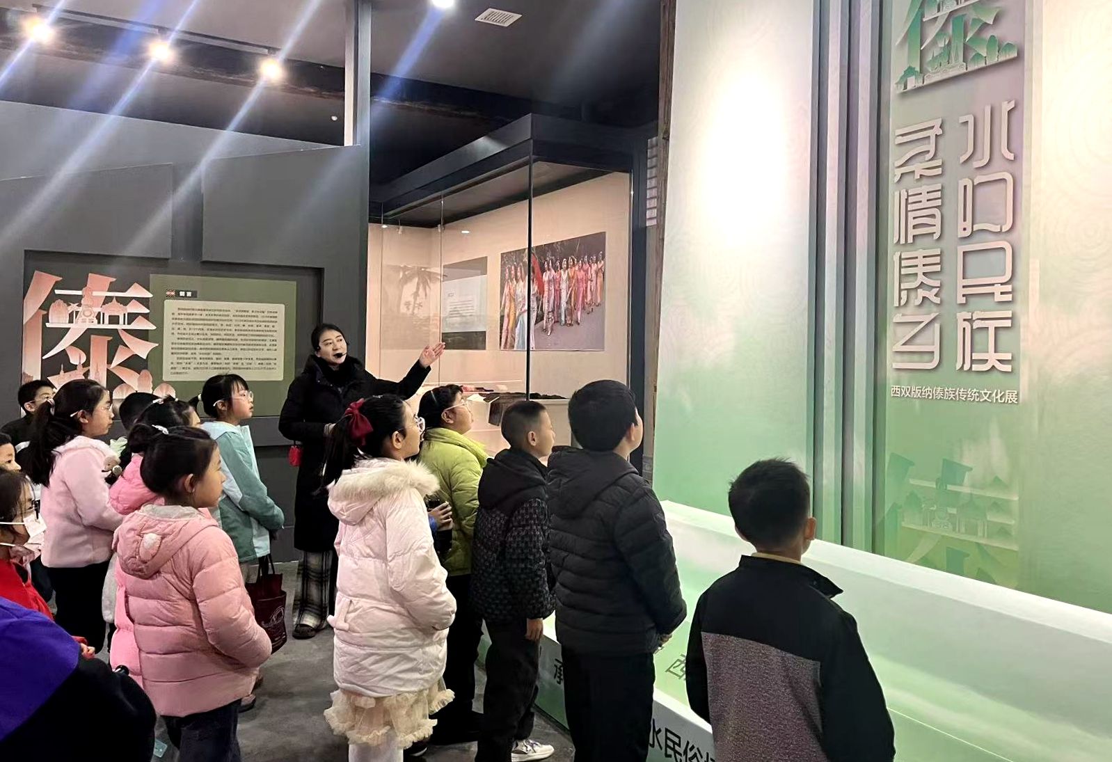 活动伊始,社教老师以展览为桥梁,将生活在西北的孩子们的视野,跨越山海延伸至云南西双版纳。老师逐层揭秘傣族竹楼的建筑密码:从标志性的“人”字形屋顶、兼具生活与社交功能的开阔露台,到象征吉祥的“凤凰屋脊”,引导孩子们直观认识竹楼的样式特征。同时,通过拆解干栏式建筑的结构功能,解答“为何傣族悬空而居”的疑问——这种设计能有效防潮、防洪、规避虫兽侵扰,让孩子们在理解实用价值的同时,进一步感知傣族对自然的敬畏之心,以及竹楼中蕴含的生活习俗与禁忌。