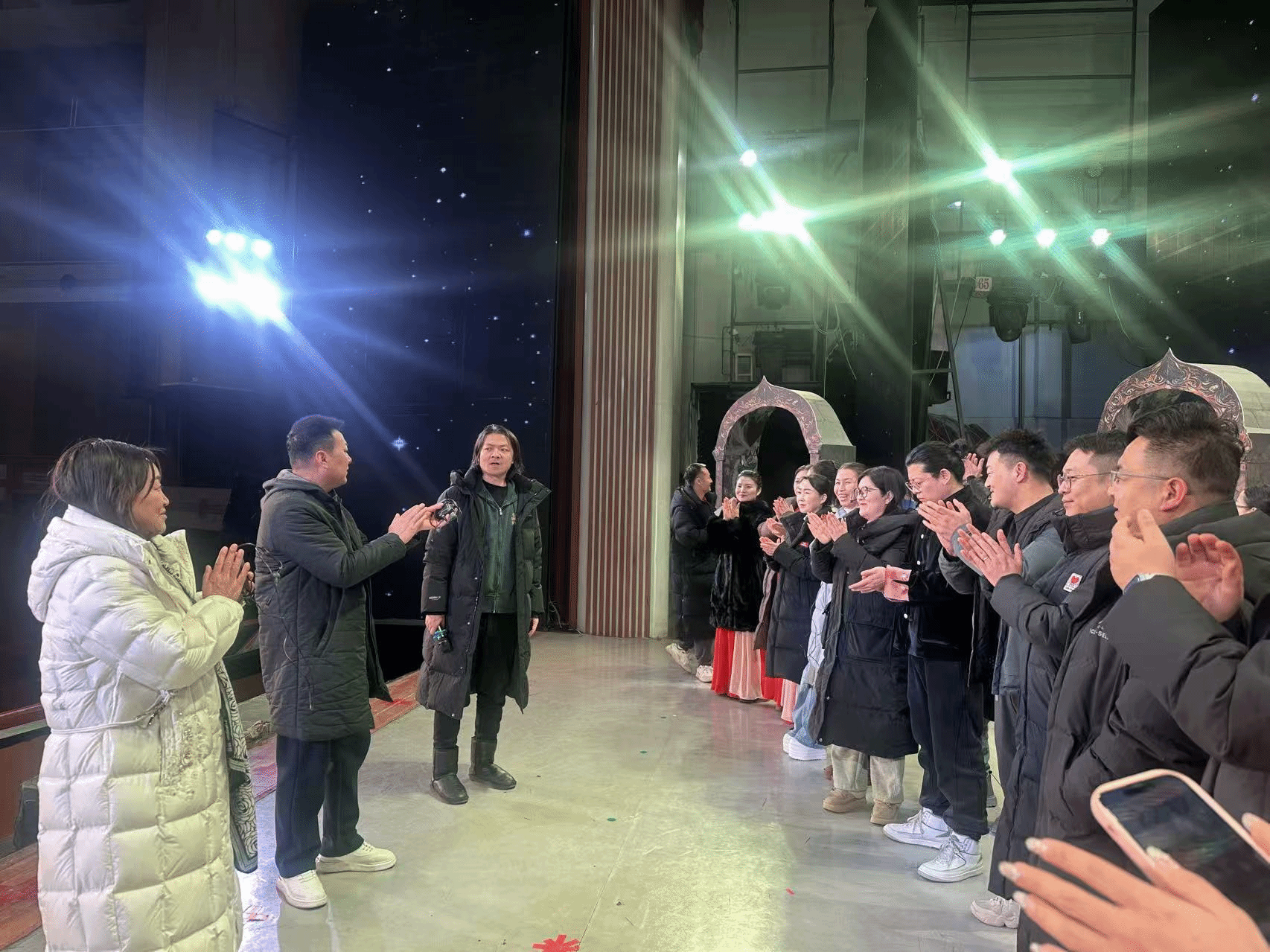1月21日晚上,市歌舞艺术研究中心主任张文静带队,副主任杨涛、王时飞、金虹组成慰问组,深入排练一线,看望慰问正全力投入原创音乐剧《东方微笑》加班排练的全体演职人员,为大家送上慰问物资与殷切关怀。