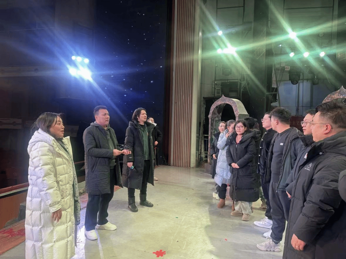 慰问组一行走进剧院,实地察看剧目排练进展,现场观摩了剧目排练。在与演职人员的交流中,班子成员详细询问了大家的排练强度、身体状况及后勤保障情况,对全体人员秉持“艺术精品”理念,放弃休息时间凝心聚力攻坚克难的敬业精神给予高度肯定。自2025年9月剧目启动排练以来,演职人员严格遵循排练计划,从唱段打磨、舞蹈编排到情感表达,每一个环节都精益求精,目前已完成多轮唱段审查与优化,整体呈现出扎实的创作基础与深厚的艺术潜力。