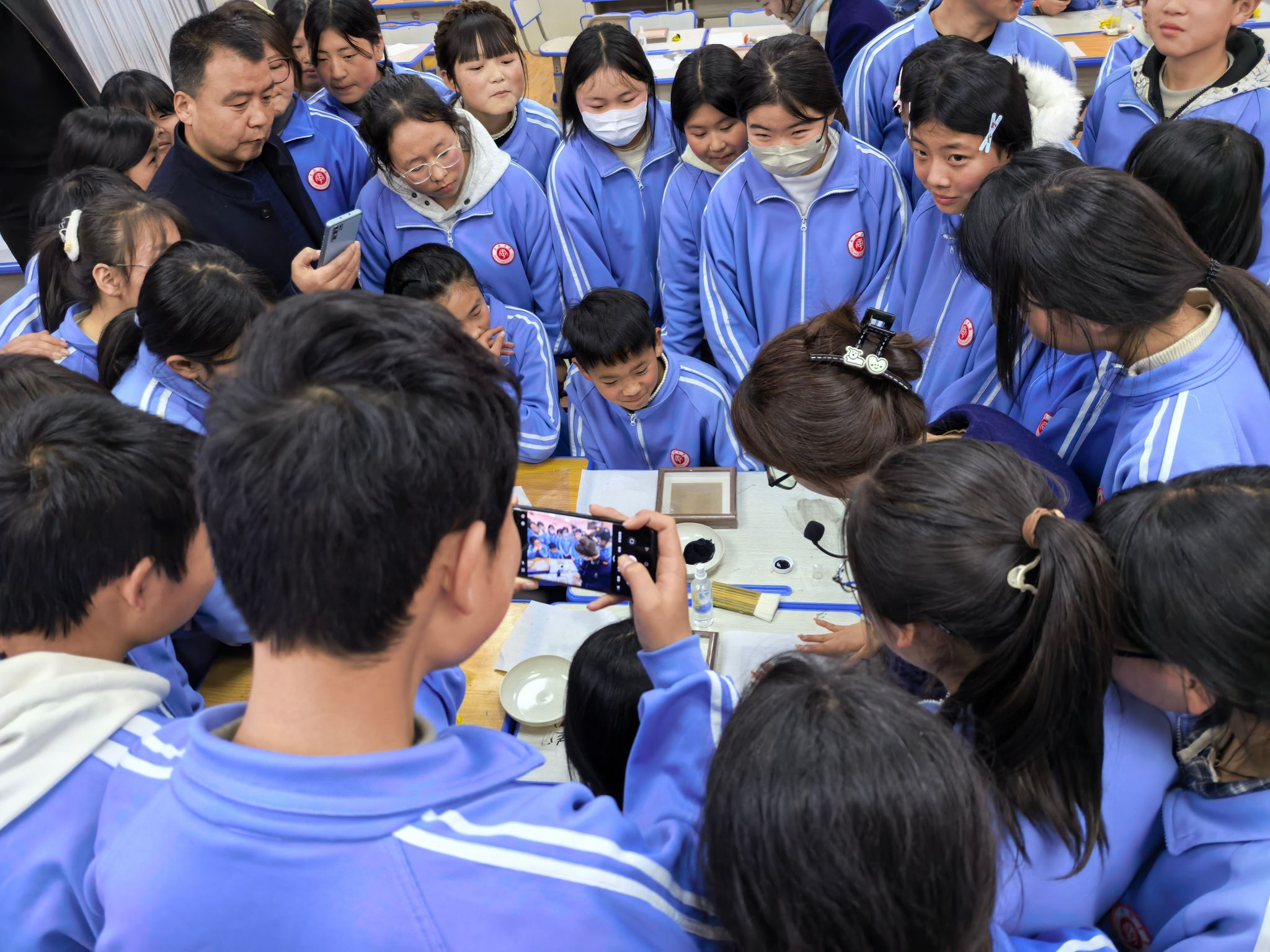为让非遗技艺扎根校园,让本土馆藏瑰宝点亮课堂,宣教团队在平南中学开设非遗拓片技艺课堂。宣教老师以天水市博物馆馆藏经典拓片为教学范例,从拓片的历史渊源、文化价值,到工具材料、工艺流程等关键步骤,将非遗知识与馆藏文化深度融合,让传统技艺更具地域辨识度与历史厚重感。