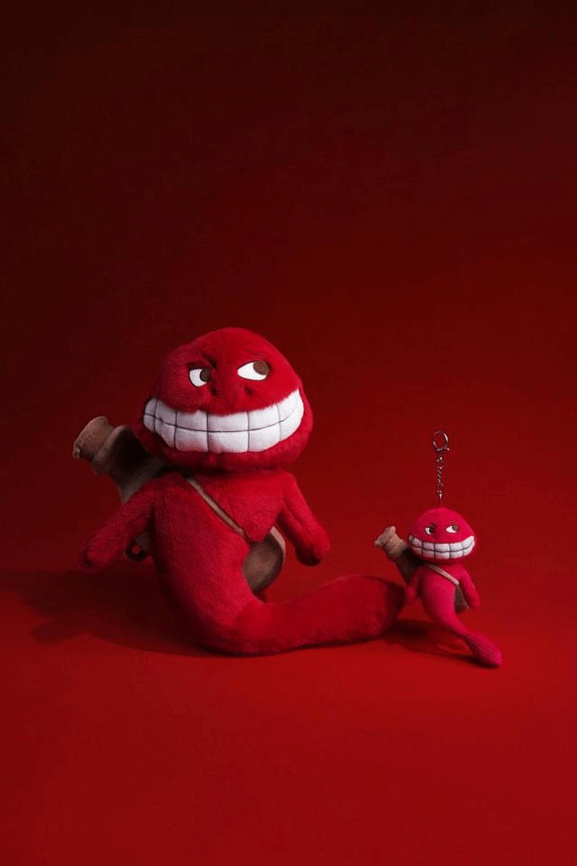 甘肃省博物馆文创中心以鲵鱼纹彩陶瓶为灵感设计的鲵娃娃·彩陶玩偶,被网友戏称为“背罐娃娃鱼”。