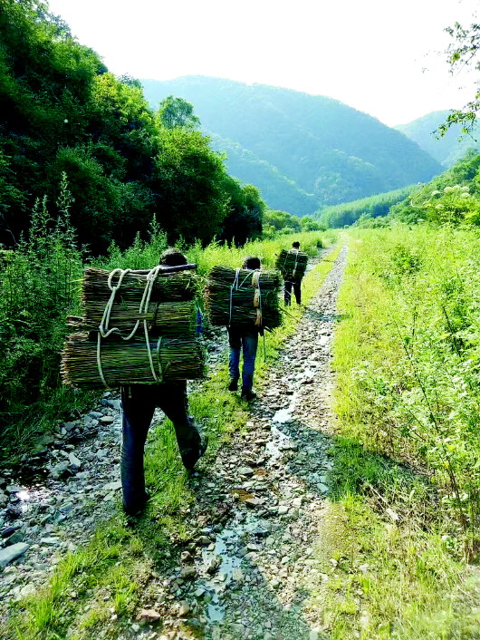 关峡竹编的根,深扎在秦州区大门镇关峡村的群山之中。关峡村虽以“关峡竹编”而闻名,但村后的山上却鲜有竹子,祖辈们要翻越好几座山,到娘娘坝、李子园,甚至礼县的深山里采竹。“听爷爷说,以前采竹要徒步走大半天山路,遇上难走的悬崖陡坡,得用镰刀、钩子一点点往上爬,一天根本回不来。”关峡竹编市级非遗代表性传承人张照杰的话语里,藏着老一辈手艺人的艰辛,“要么就近住在农户家里,编几个竹筐抵住宿费;要么就在山里搭个简易的小平房,十几个人挤在一起,在山里待上几天,待把竹子刮青去废后,再一点点背回村里”。