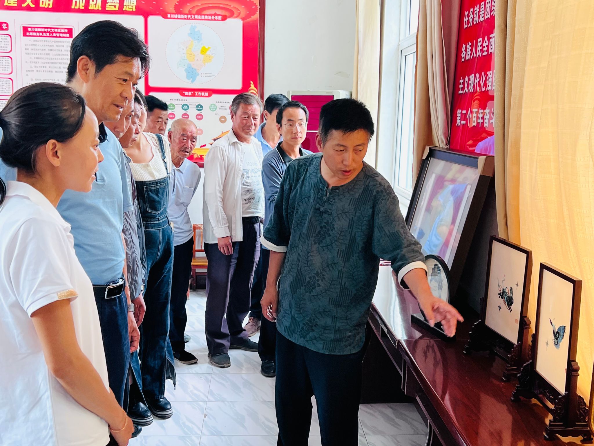 草川铺镇党委书记申国凤全面系统介绍了全镇非遗项目保护现状和存在的困难,各村组支书、与会人员纷纷介绍了各自村组基本情况,畅谈了自己对非遗传承保护、乡村文化振兴的认识与理解。曹文成、刘云帆两位老师耐心解答,对乡村非遗传承保护利用和中华优秀传统文化创新型发展、创造性转化提出了自己的看法与建议。会上大家各抒己见、相互启发,研究探讨,整个座谈会气氛热烈,达到了很好的效果,并形成以下共识。