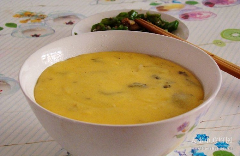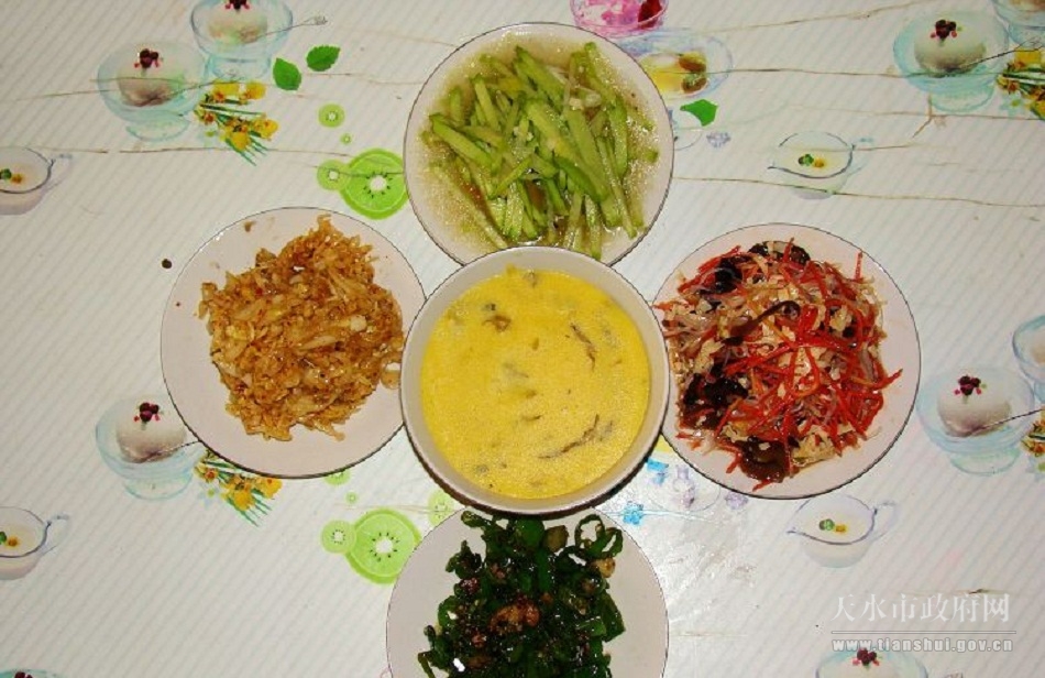 稍凉一下,把筷子平过来,从边缘向中心,一圈圈收着吃。最可口的,是新磨的玉米糁馓面撮,甜丝丝的,真透出“良食”的味道。现在,在天水吃馓饭,讲究的配菜不少。必配的,首先当然是酸菜。一大盆墨绿的酸菜,和着浆水端上桌。切成半厘米宽的丝,薄而均匀。浆水里漂着鲜红的辣椒段,一看就食欲大开。我们小时候的酸菜可没这么豪华。馓面撮出锅,掀开浆水缸,挑出一大团酸菜来。原料来源庞杂,有苦菜、有灰灰菜、有白菜。有的没切,有的切得很“豪放”。讲究点的,用葱花辣椒炝一下,但那时油也珍贵,大多数时候,就放点盐——酸菜本来酸,醋也省了。我们小孩,不大吃酸菜,最大的奢侈是洒点白糖。天水馓饭的另一标配,是土豆丝。细细的土豆丝和红红的辣椒丝炒在一起,含羞带笑地端上桌来,和酸菜、馓饭构成了民间美食的吉祥三宝。虽然醋溜土豆丝是山西“第一名菜”,但吃馓面撮却还没这待遇,那要等到吃白面馒头时才有。白面馒头、小米粥、醋溜土豆丝,我们一边吃馓面撮,一边撮撮手脸,做着美食的梦。