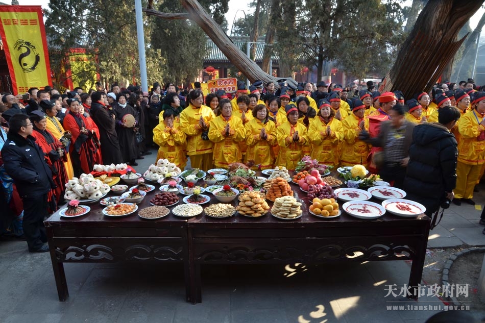 ▲天水伏羲庙丁酉年春祭伏羲之迎献饭场面
