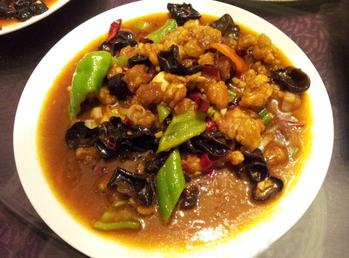 酸辣里脊以口味和原料合名,是大西北地方传统名菜。甘肃天水厨师烹制的酸辣里脊,酥嫩味鲜,酸辣适口,滋汁人盘,响声大作,里脊爆张,使人刮目相看,喷喷叫绝。